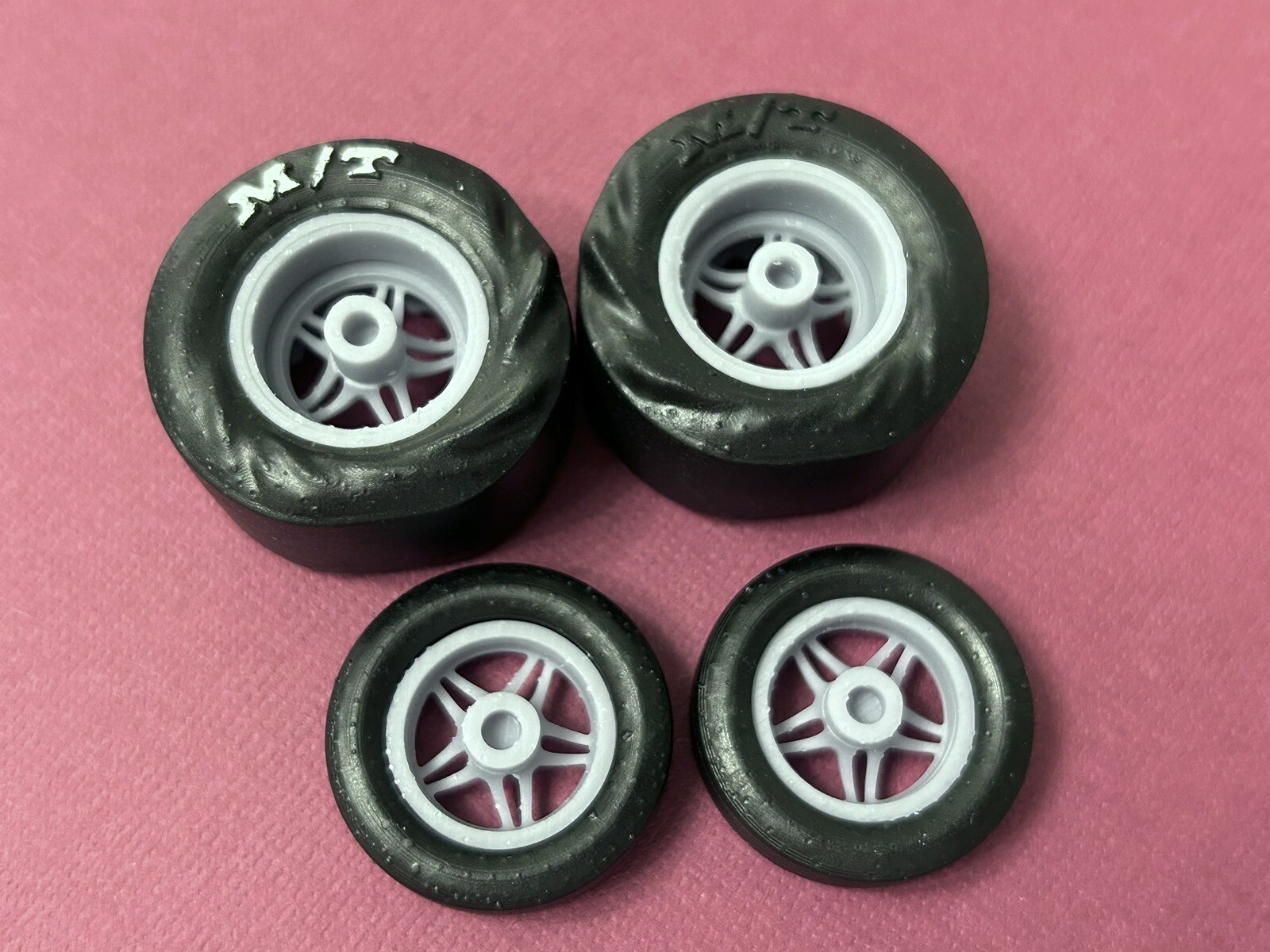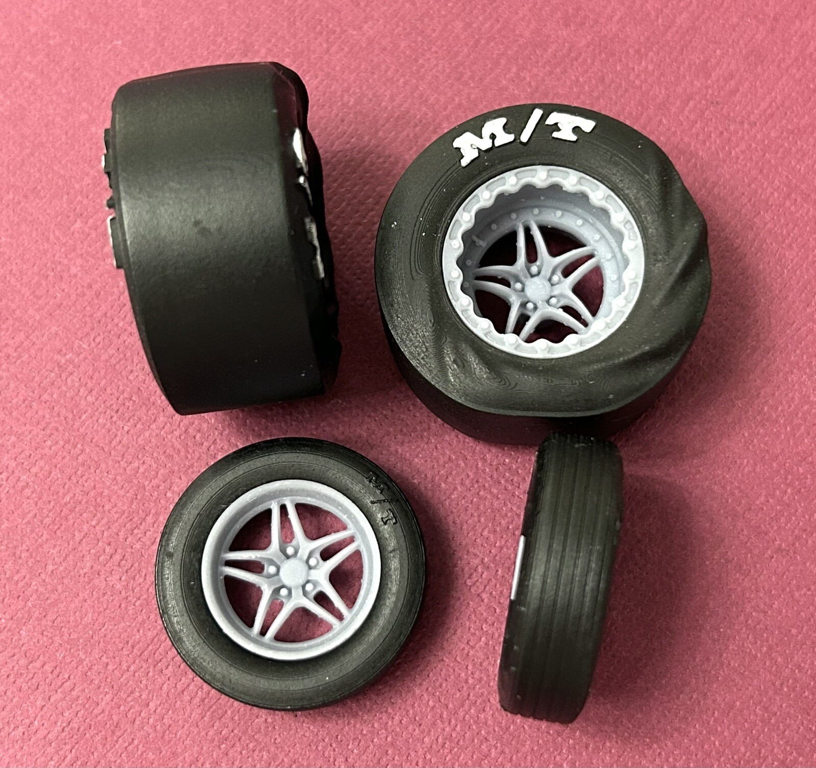 1/24 Scale: 17/15-inch “Weld S81” Wheels W/Wrinkled Drag Slicks; Resin, 3D