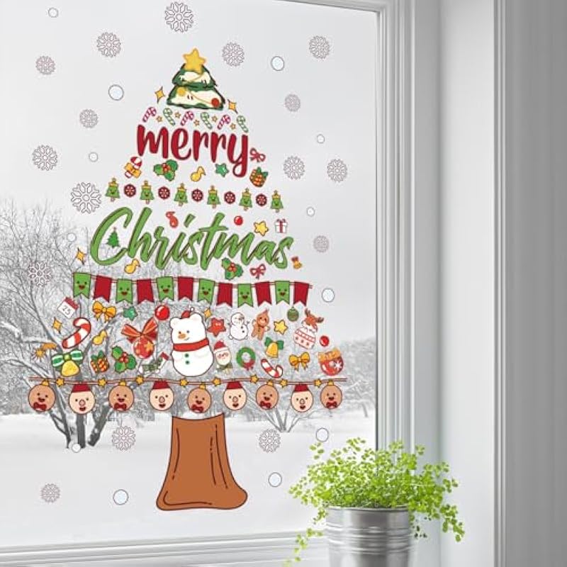 - Christmas Window Decals: Features classic holiday elements such as snowmen, reindeer, and Christmas trees; instantly adds a cheerful festive vibe; ideal for creating a cozy holiday atmosphere in any room or space