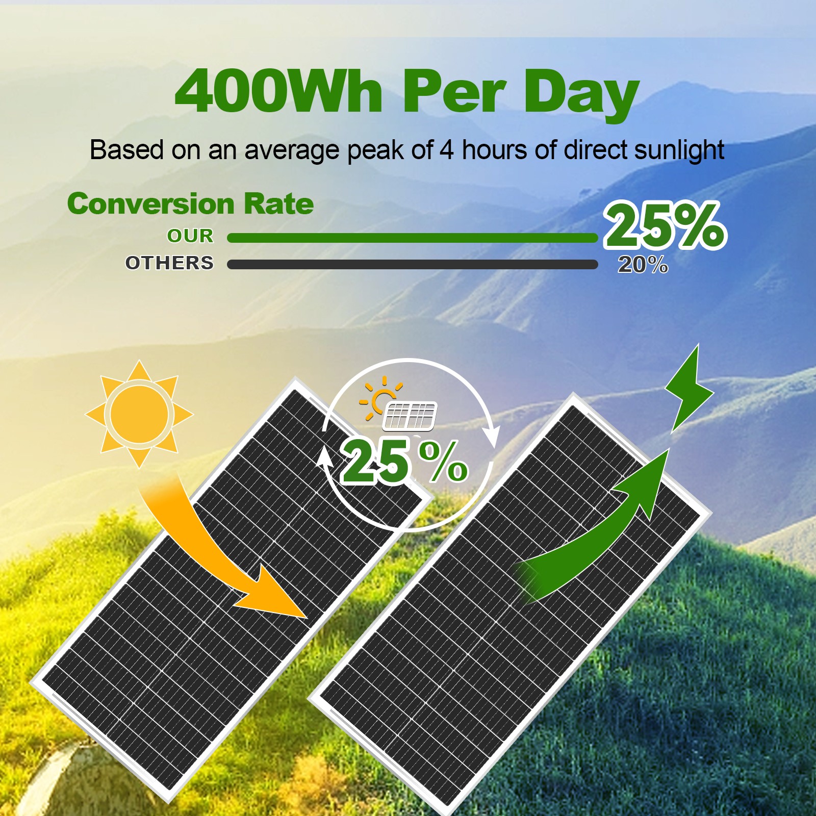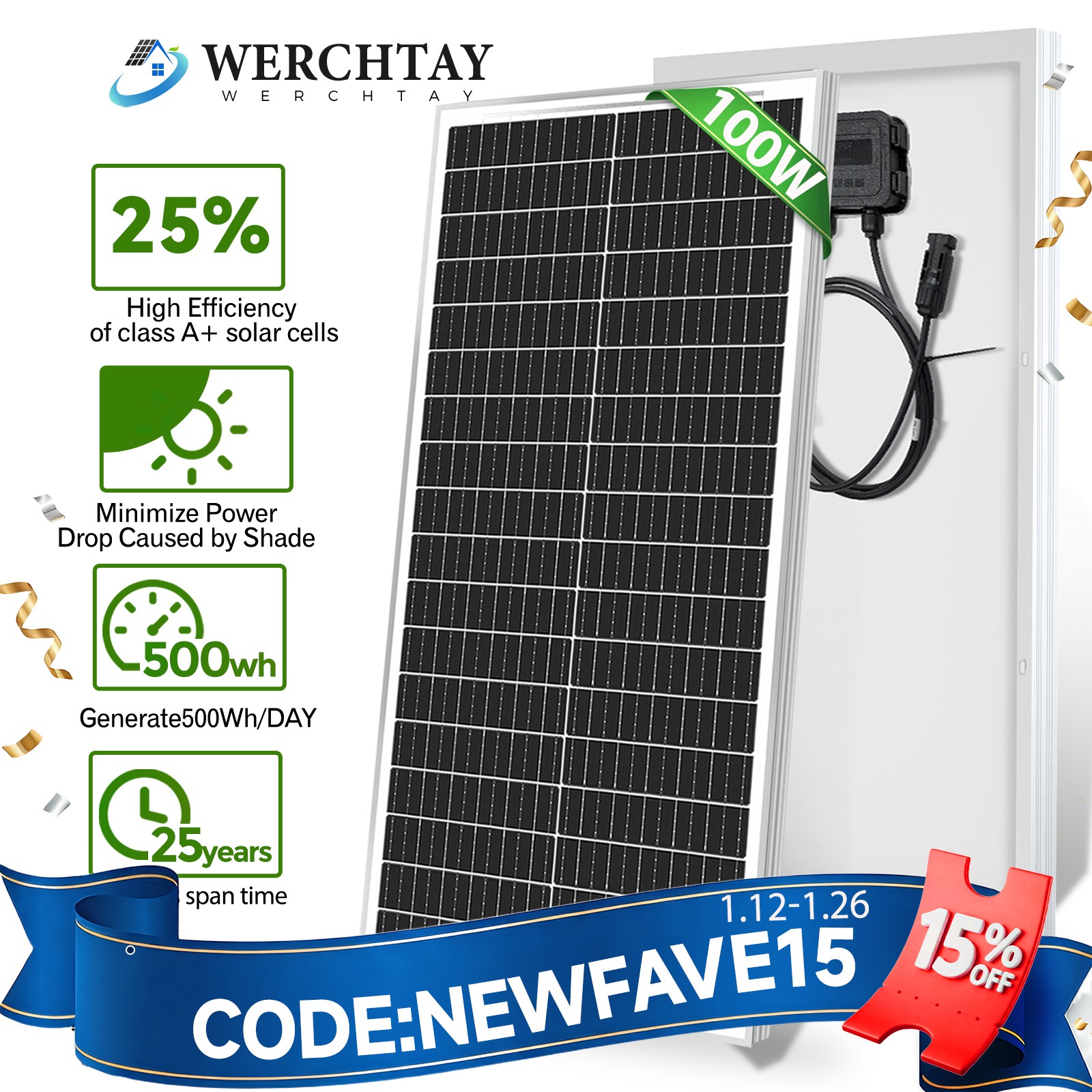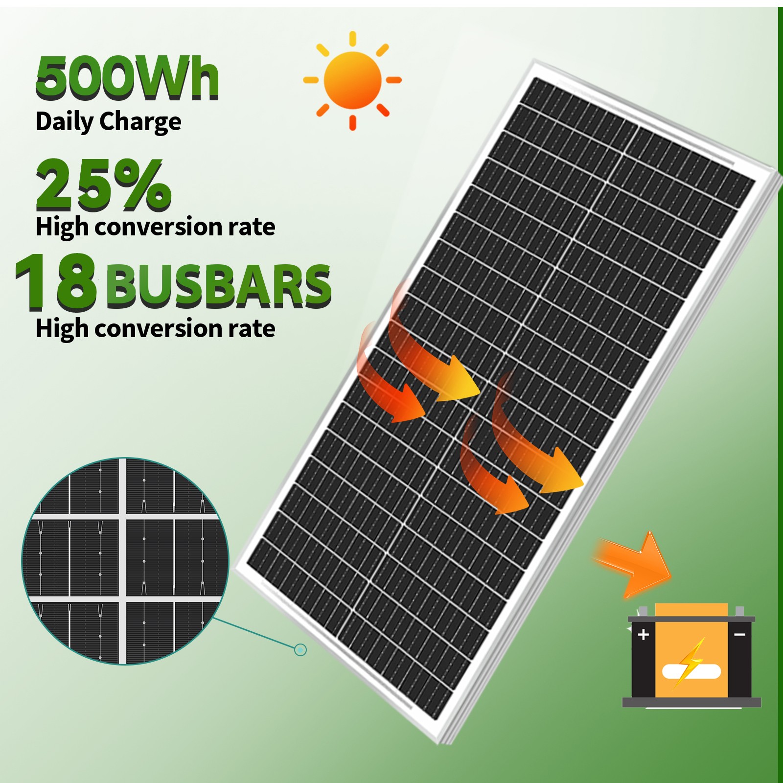 100W Monocrystalline Solar Panel 12V Charger CarRV Camping Home Off-Grid 18BB