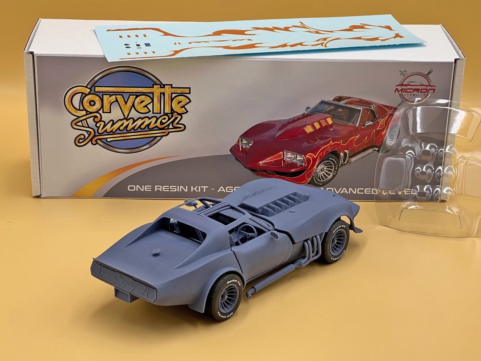 1:25 Corvette Summer Resin Model Kit With Decals, Rubber Tires and Clear Parts