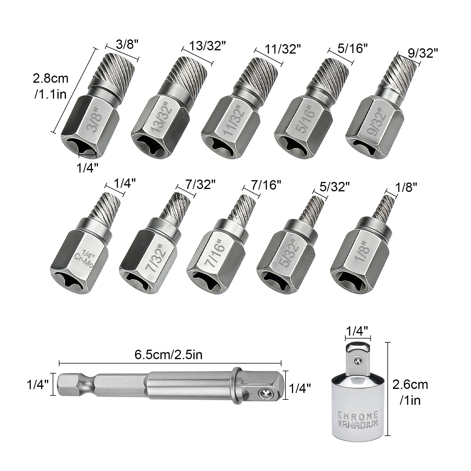 10*Broken wire extractor, 1*Hexagonal shank connector, 1*Sleeve adapter