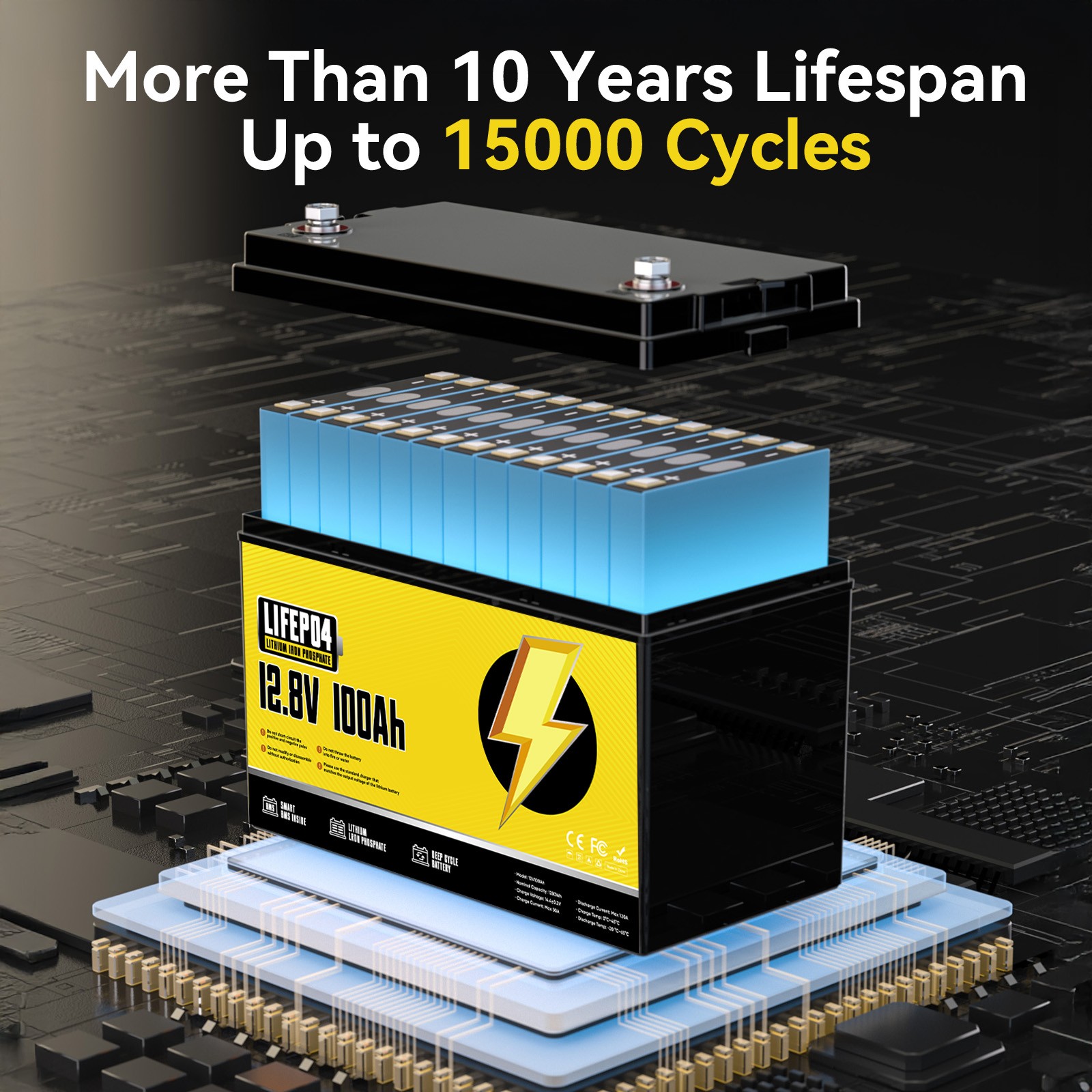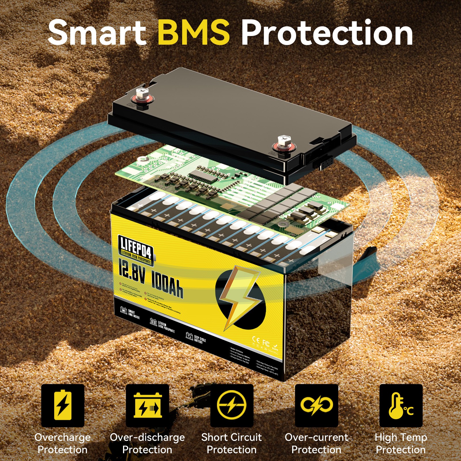 12V 100Ah LiFePO4 Lithium Battery Deep Cycles RV Marine Trolling Motors Off-grid