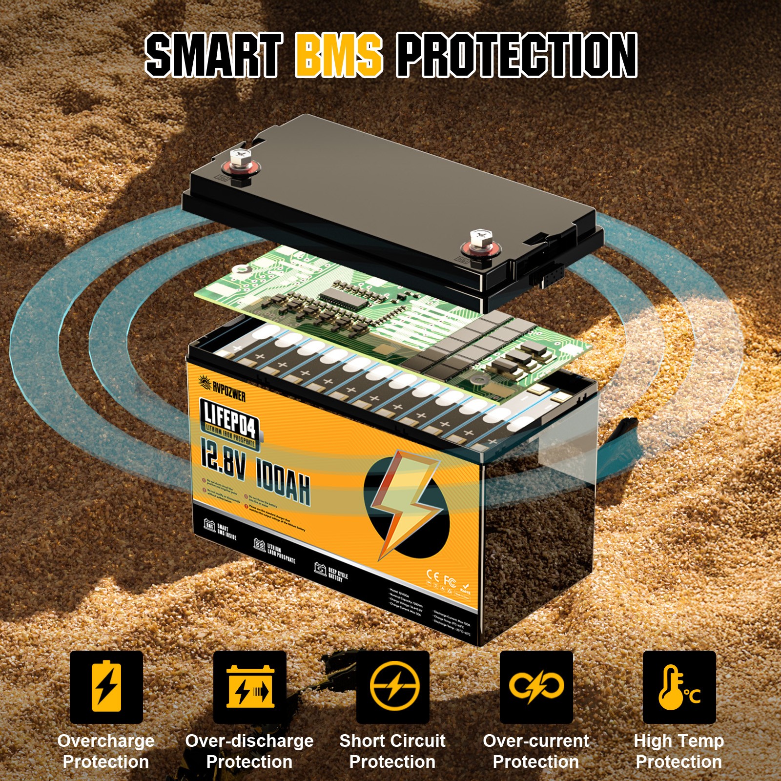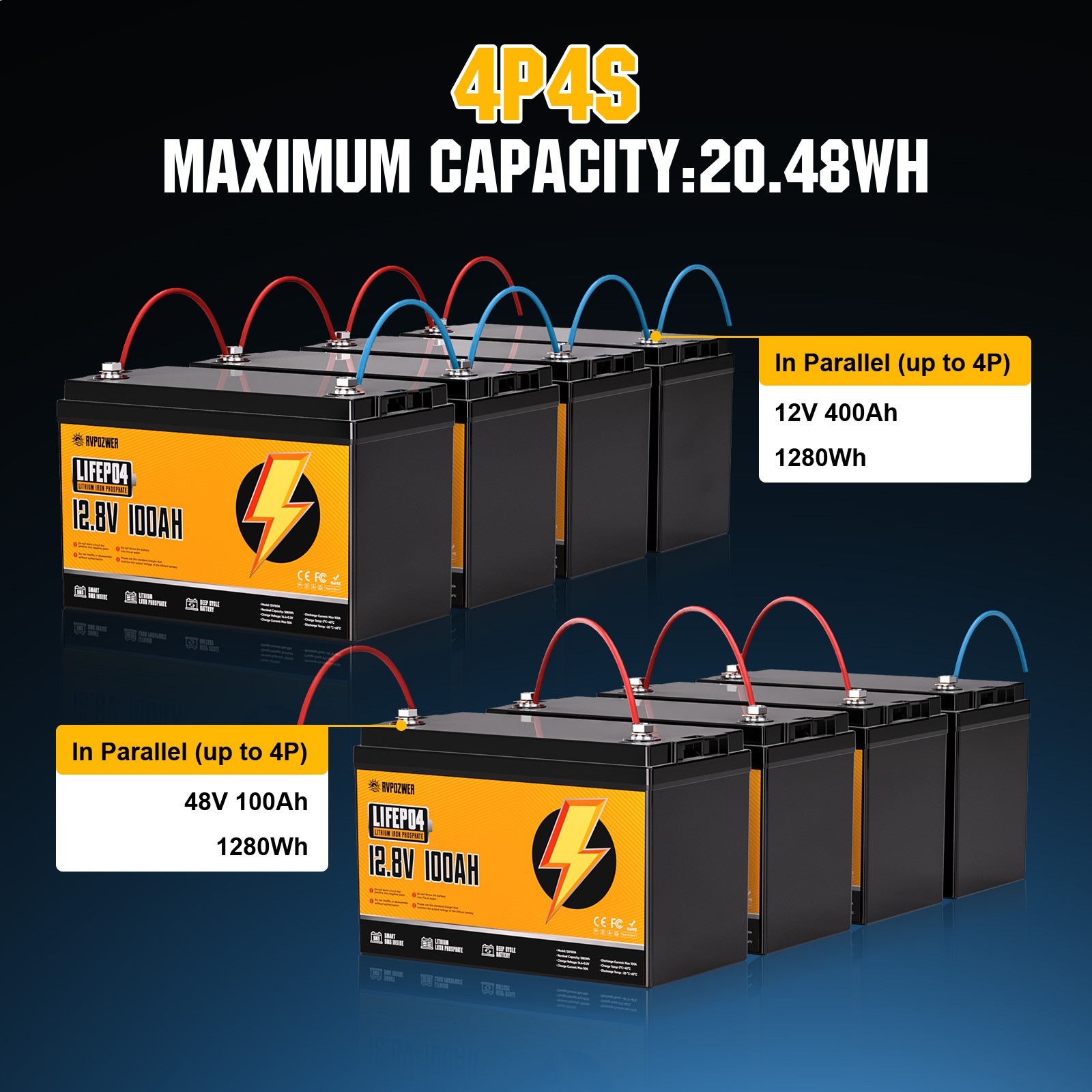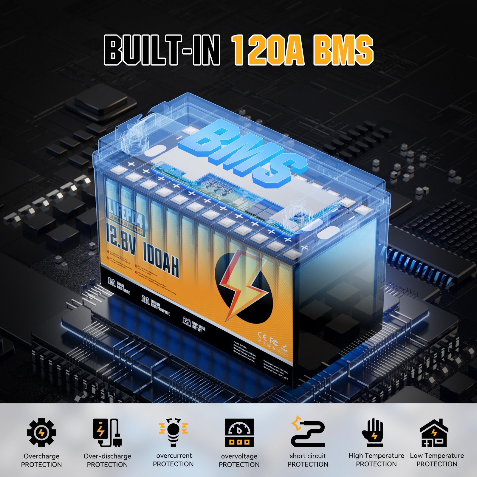 12V 100Ah LiFePO4 Lithium Battery Deep Cycles RV Marine Trolling Motors Off-grid