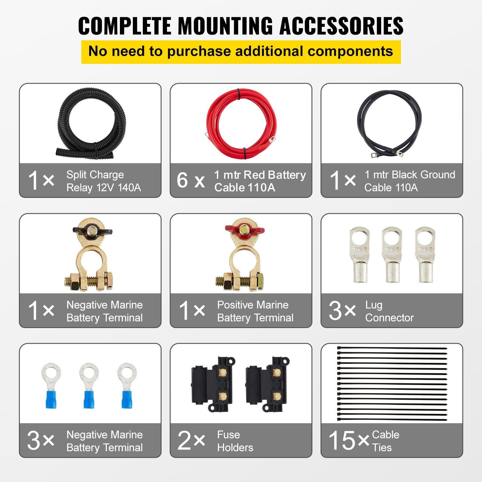 12V 140A Dual Battery Management Kit 6m Wire IP65 Split Charger