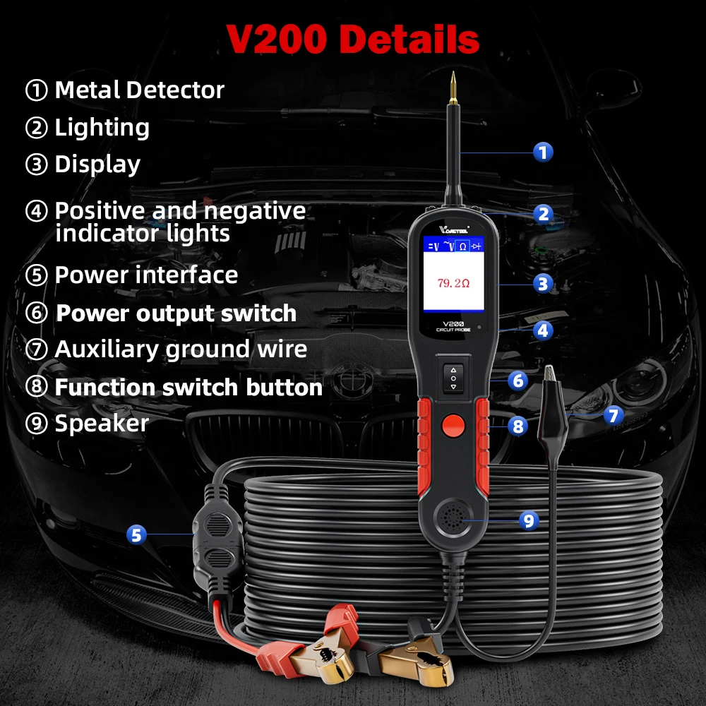 12V 24V Automotive Power Scan V200 Car Circuit Tester Electrical Power Probe Kit