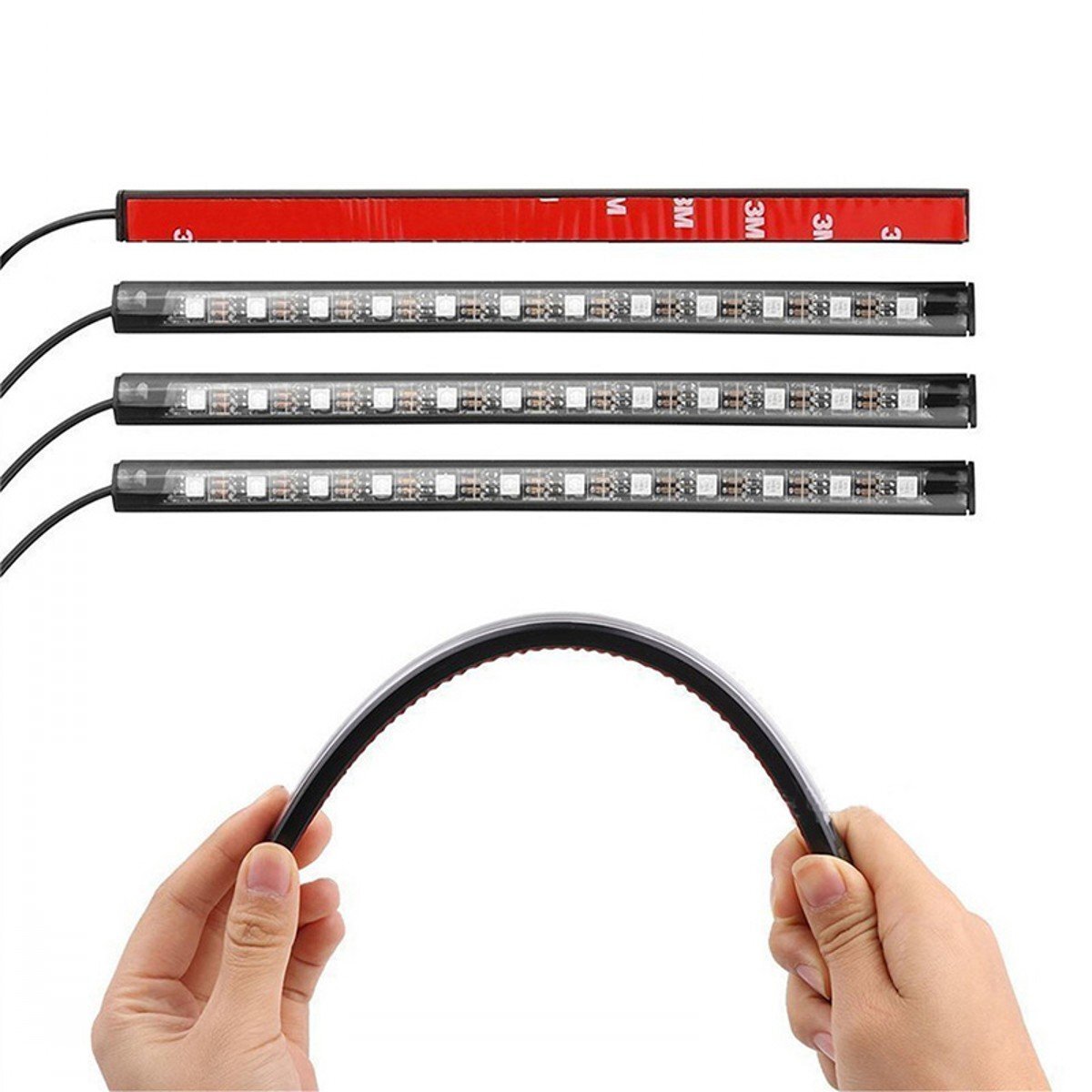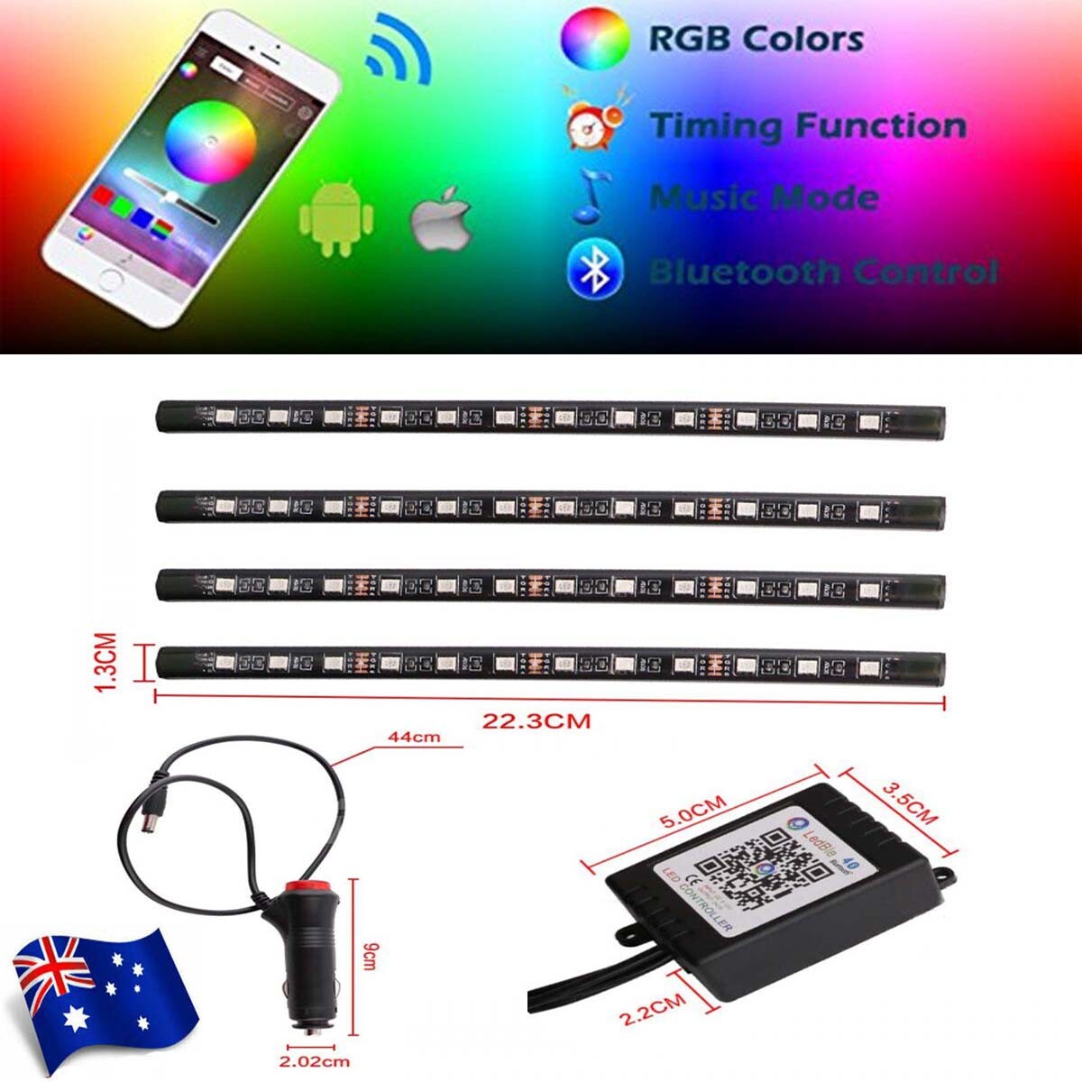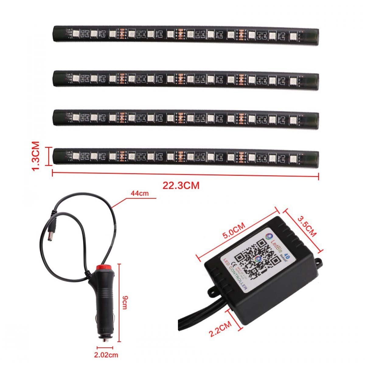 12V RGB Car Interior Strips Lights 12 LEDs & Bluetooth APP Remote Control Kit