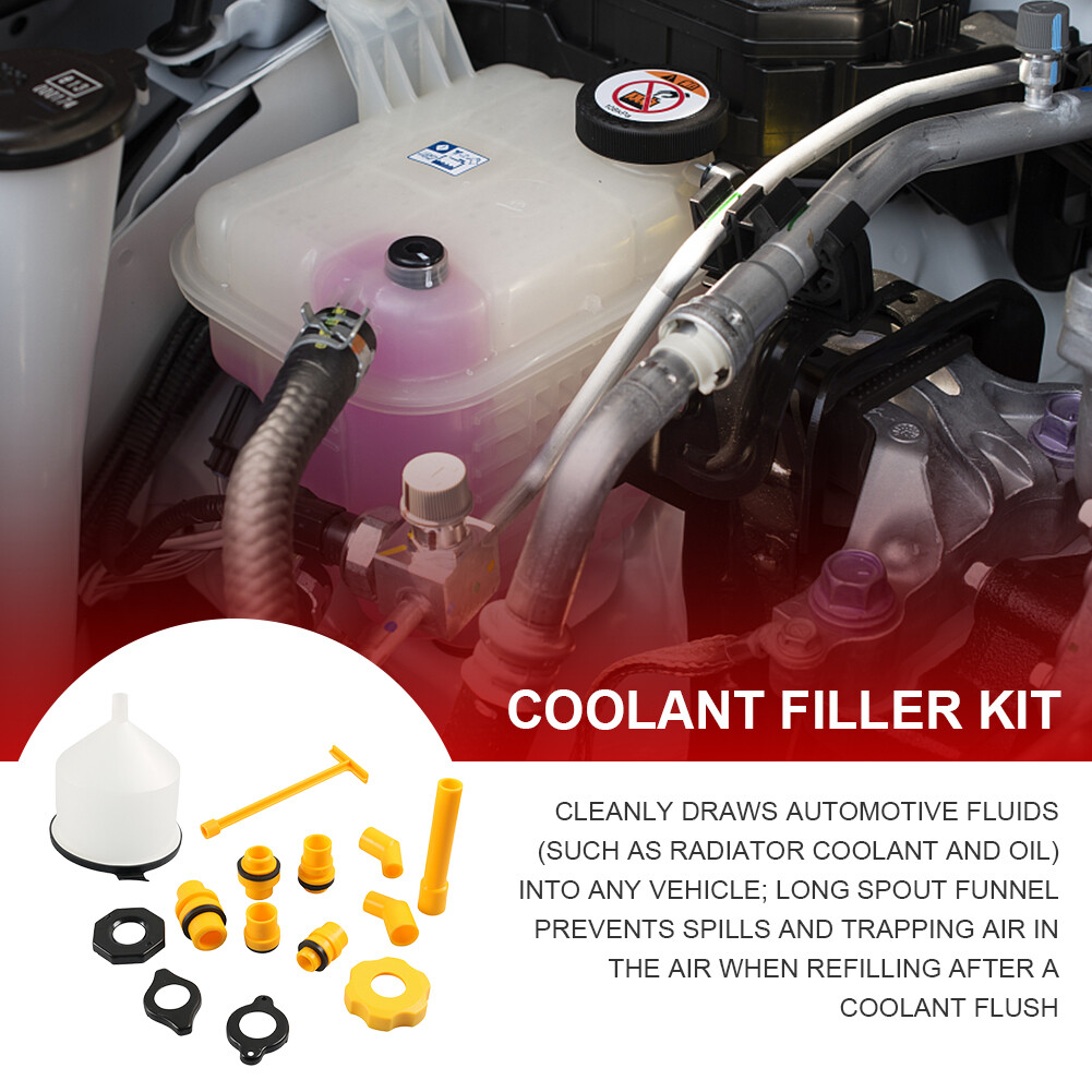 15 Piece Spill Proof Radiator Coolant Filling Funnel Kit Car Auto Fluid Oil Set