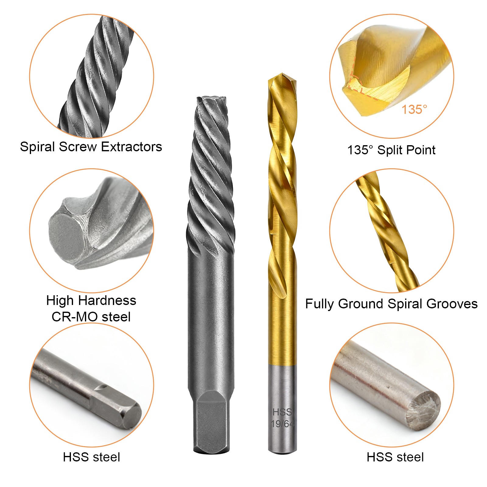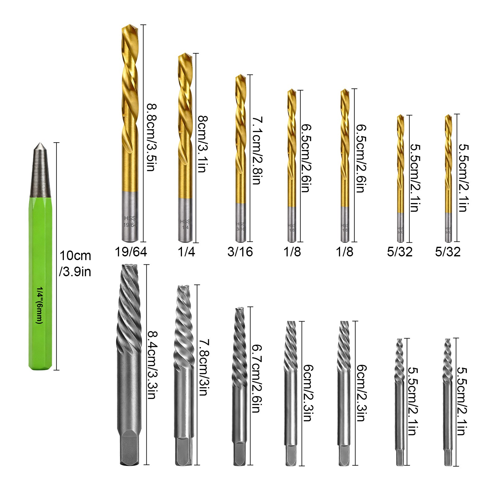 15x Broken Bolt Stripped Screw Extractor & Left-Hand Drill Bit HSS Cobalt CR-MO