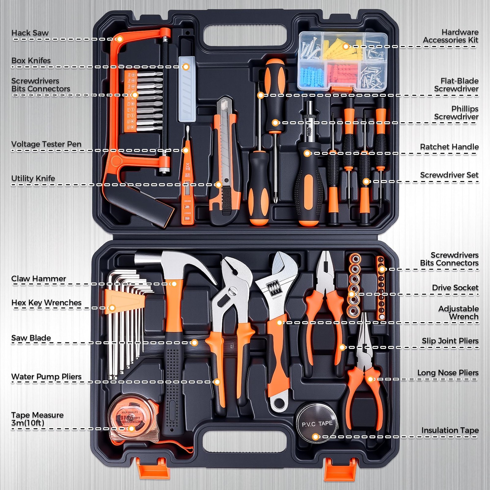 160 Piece Tool Set, Basic Home and Car Tool Kit with Tool Box, Automotive Apa…