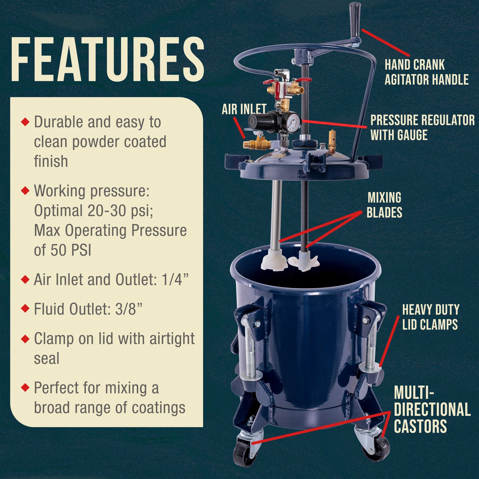 2-1/2 Gallon PRESSURE FEED PAINT POT TANK Spray Gun Sprayer Regulator Agitator