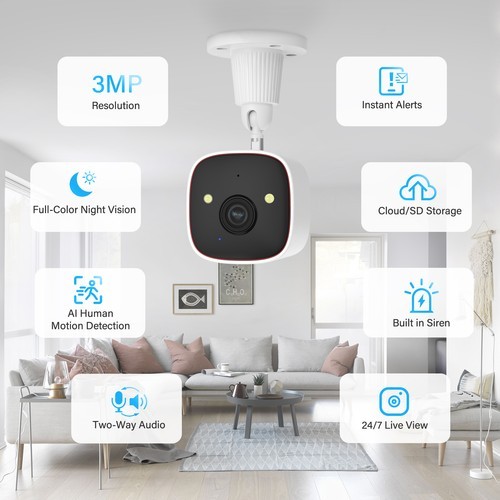 Add-On Camera, Bluetooth, Instant Alert, Mini Surveillance Camera, Motion/PIR Activated, Multiple Language Support, Night Light, Night Vision, Pet Friendly, Plug in, Smart Light, Wi-Fi, Wall Mounted