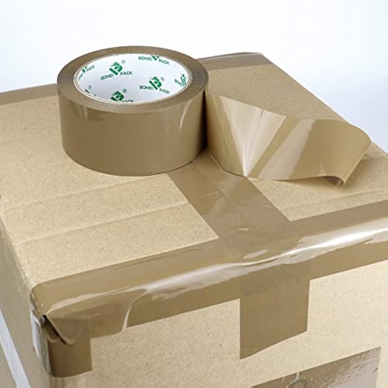 - Thickness 68 microns x Width 1.88 inches x 55 yards per roll, 110 yards total, Noiseless Brown Packaging Tape (2/pack)