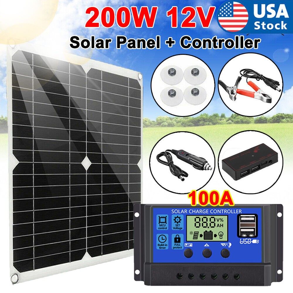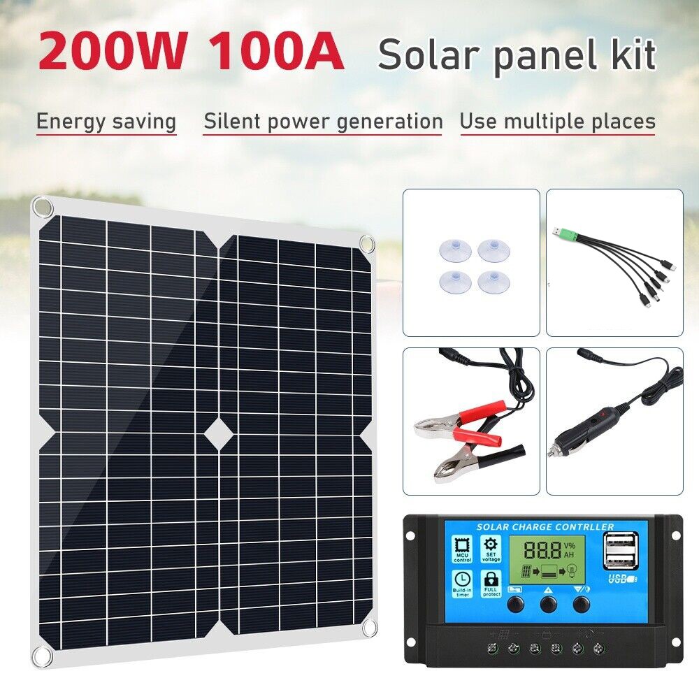 200W Solar Panel Kit 12V Battery Charger w/ 100A Controller For Car Caravan Boat
