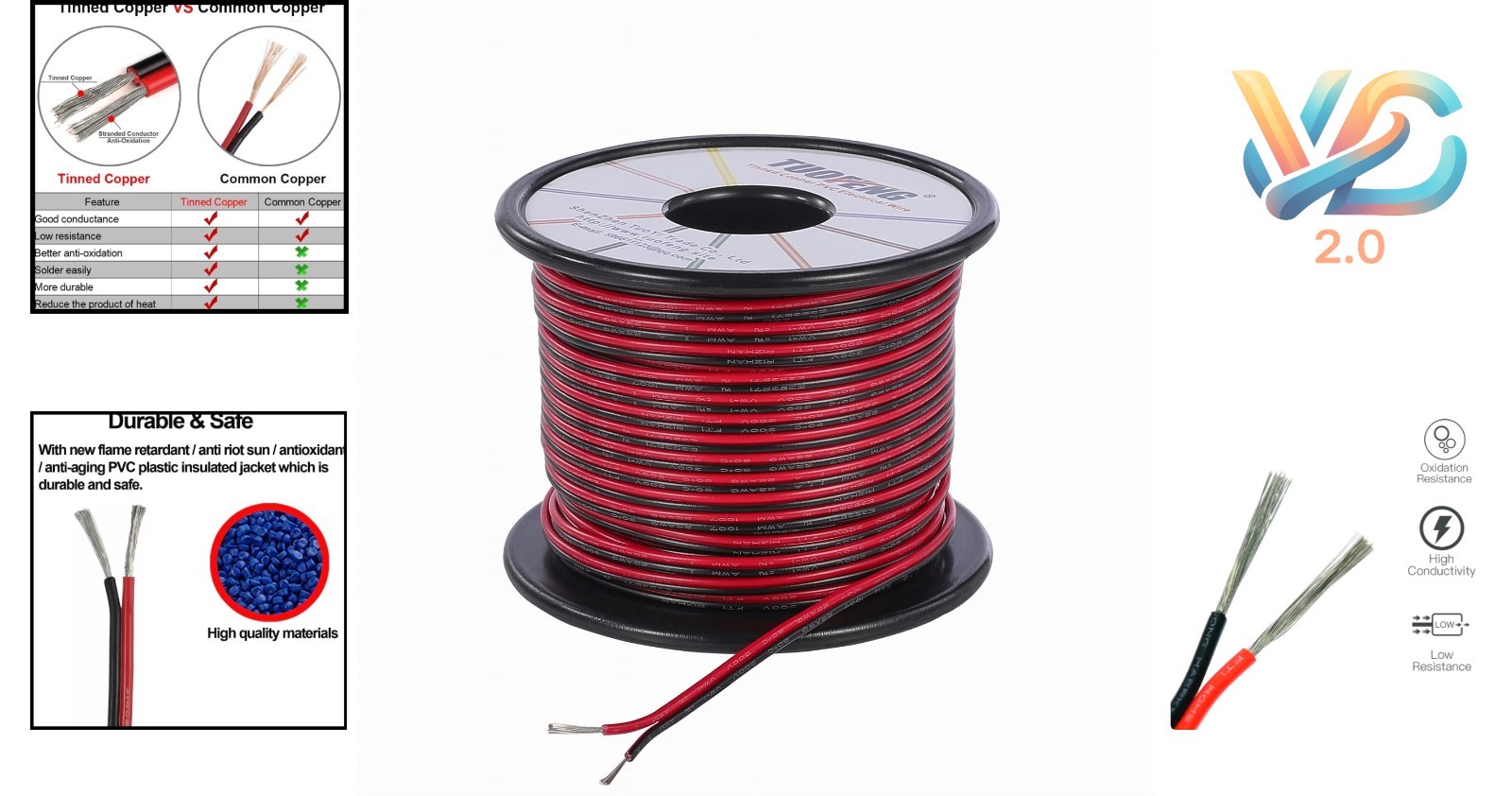 22 Awg 2 Parallel Pvc Wire 100ft