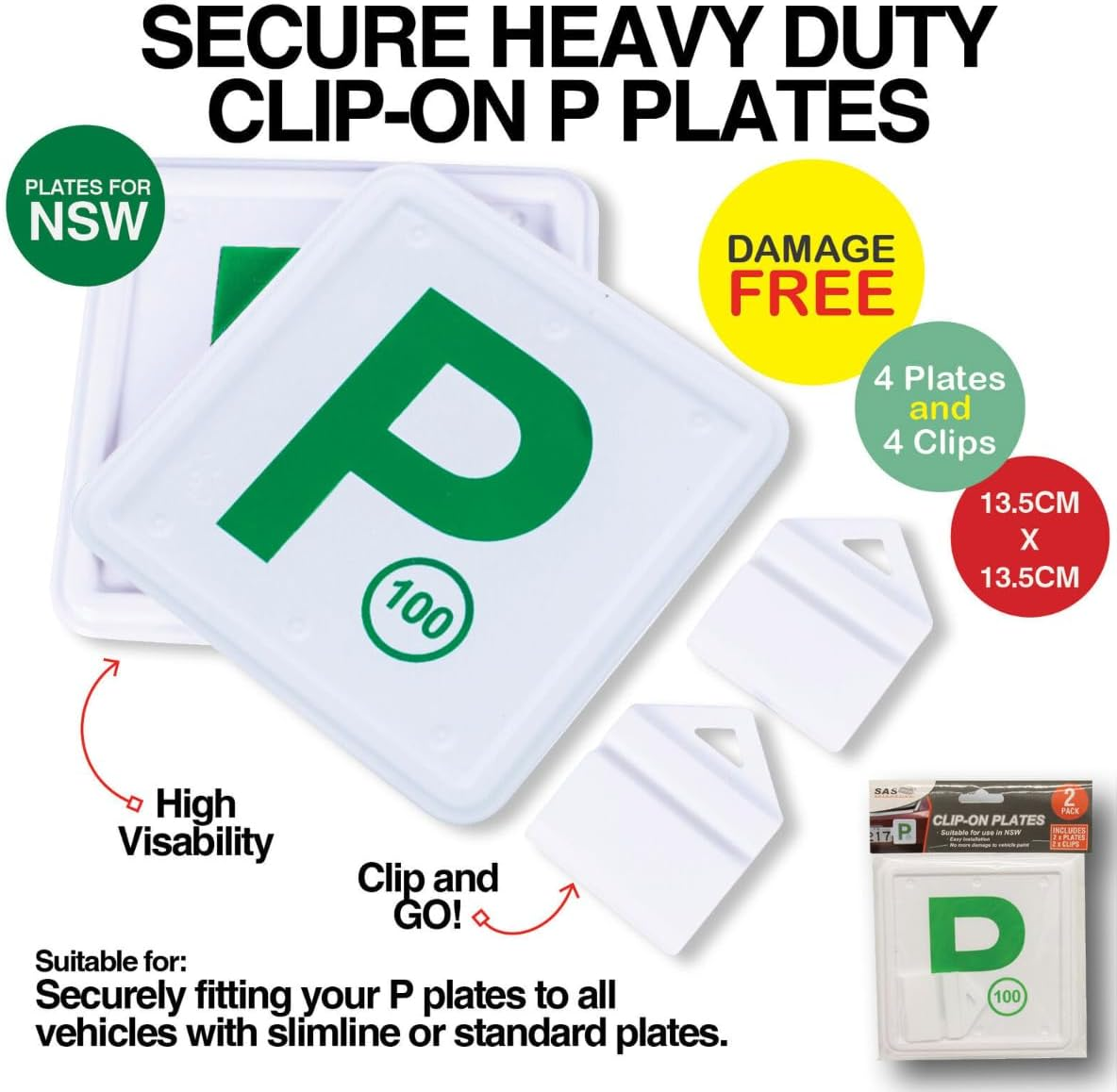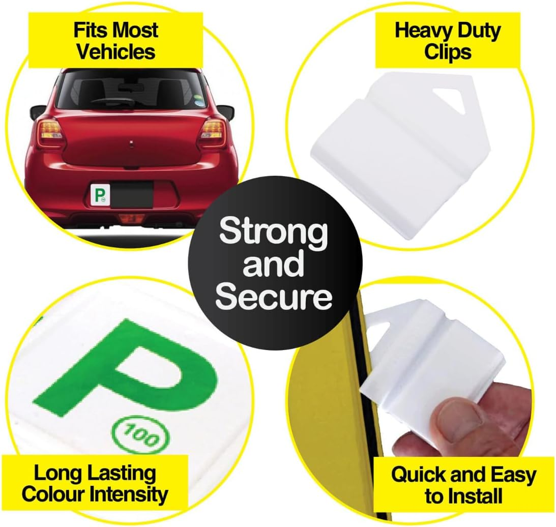 [2PCE] Handy Automotive Clip-On Green P Plates,Quick and Easy to Install, No Nut