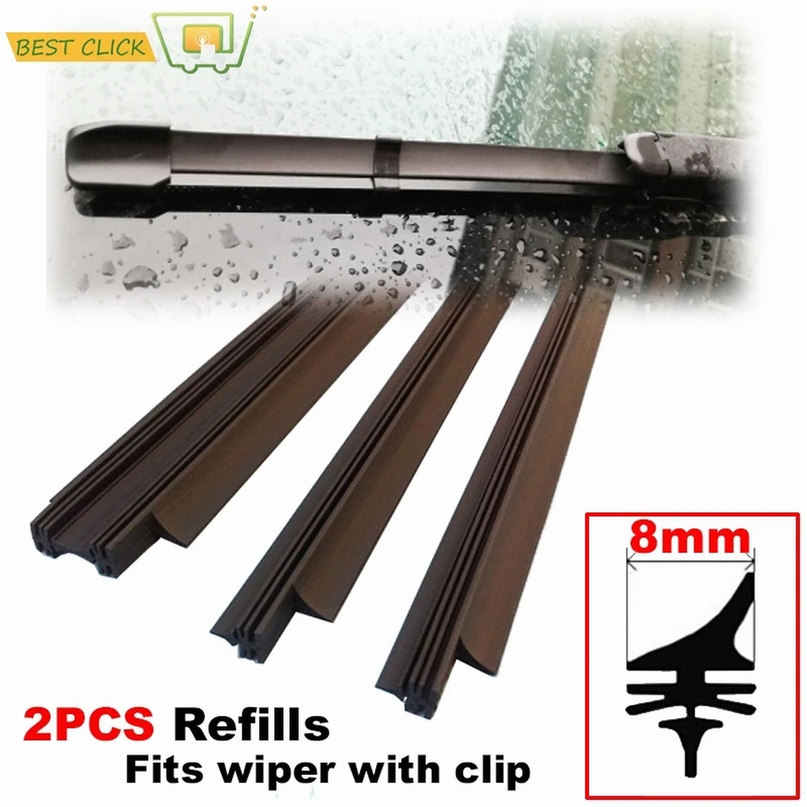 2Pcs 26″ Wiper Refills with Retaining Clip – 0.31 in Front Wiper, A Grade Rubber
