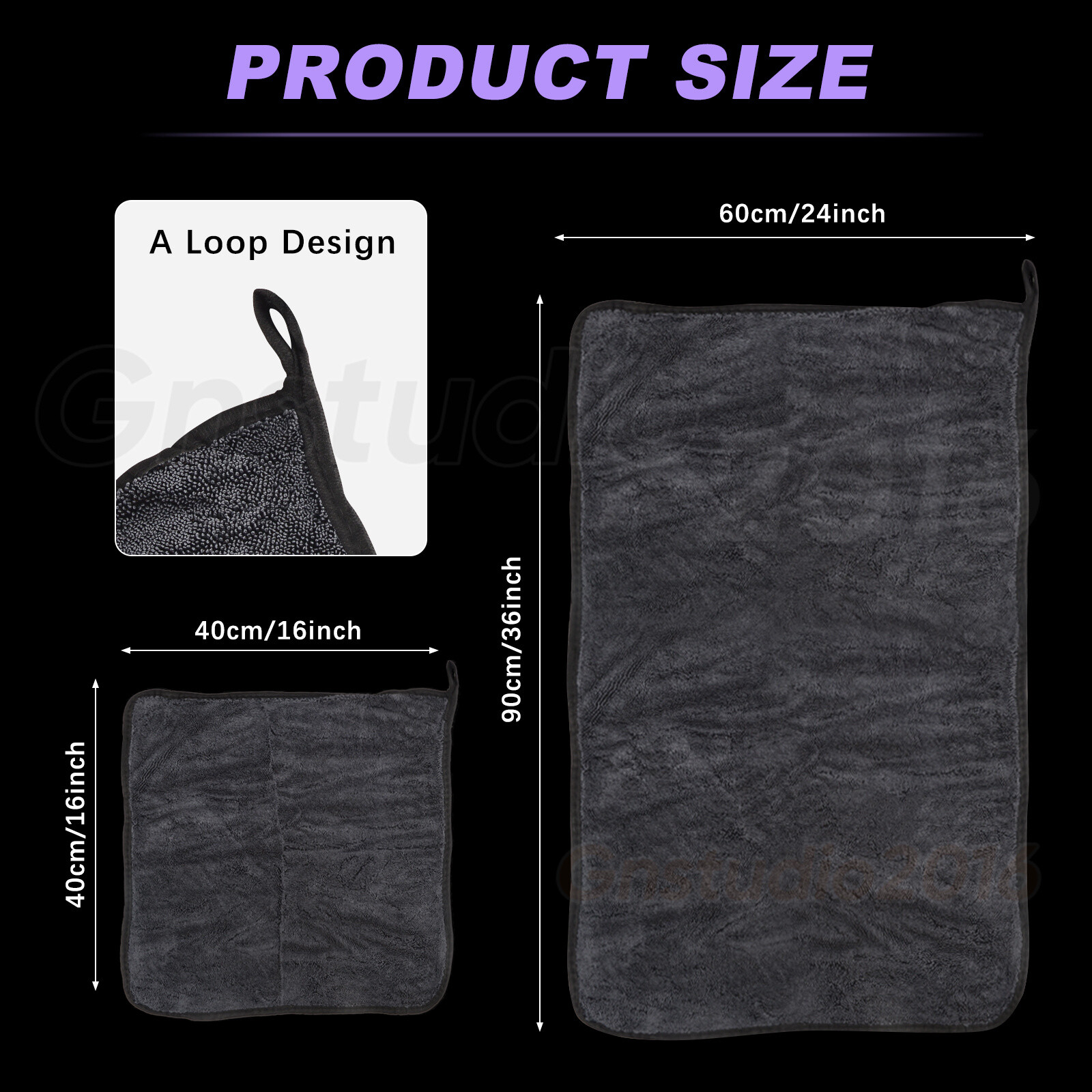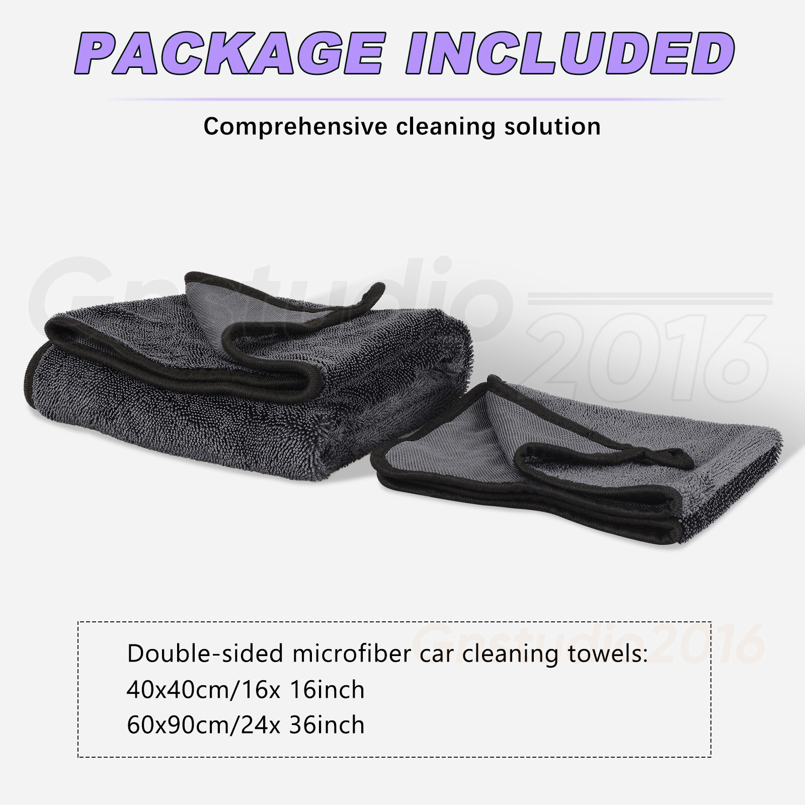 2PCS Car Towel Set 600GSM Microfibre 90×60 40x40cm for Drying and Detailing