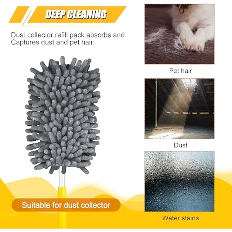 2pcs Duster Refills for Swiffer, Microfiber Dusters Heavy Duty Refills 360 Ceiling Fan Duster Replacements Reusable Hand Dusters for Cleaning (Gray)