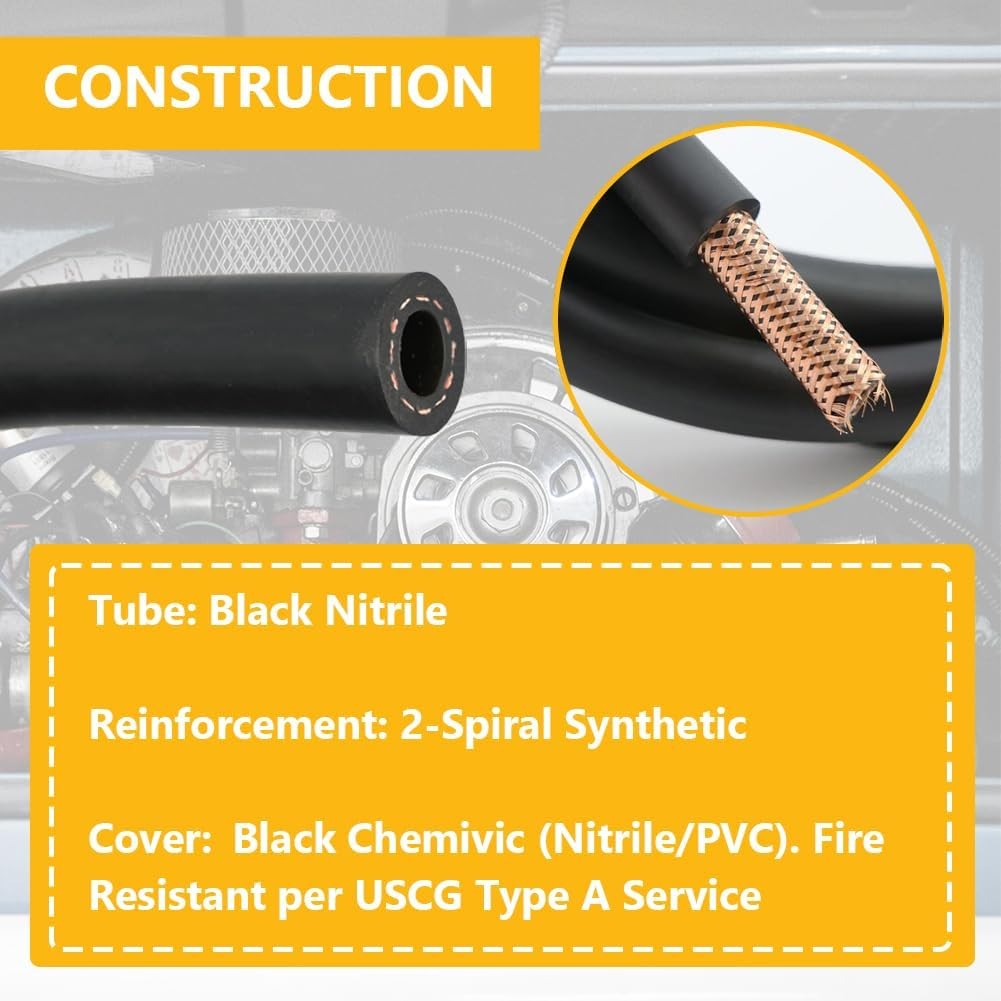 3/8 Marine Fuel Line Hose – 20FT SAE J1527 Type A1-15 Boat inch 20ft