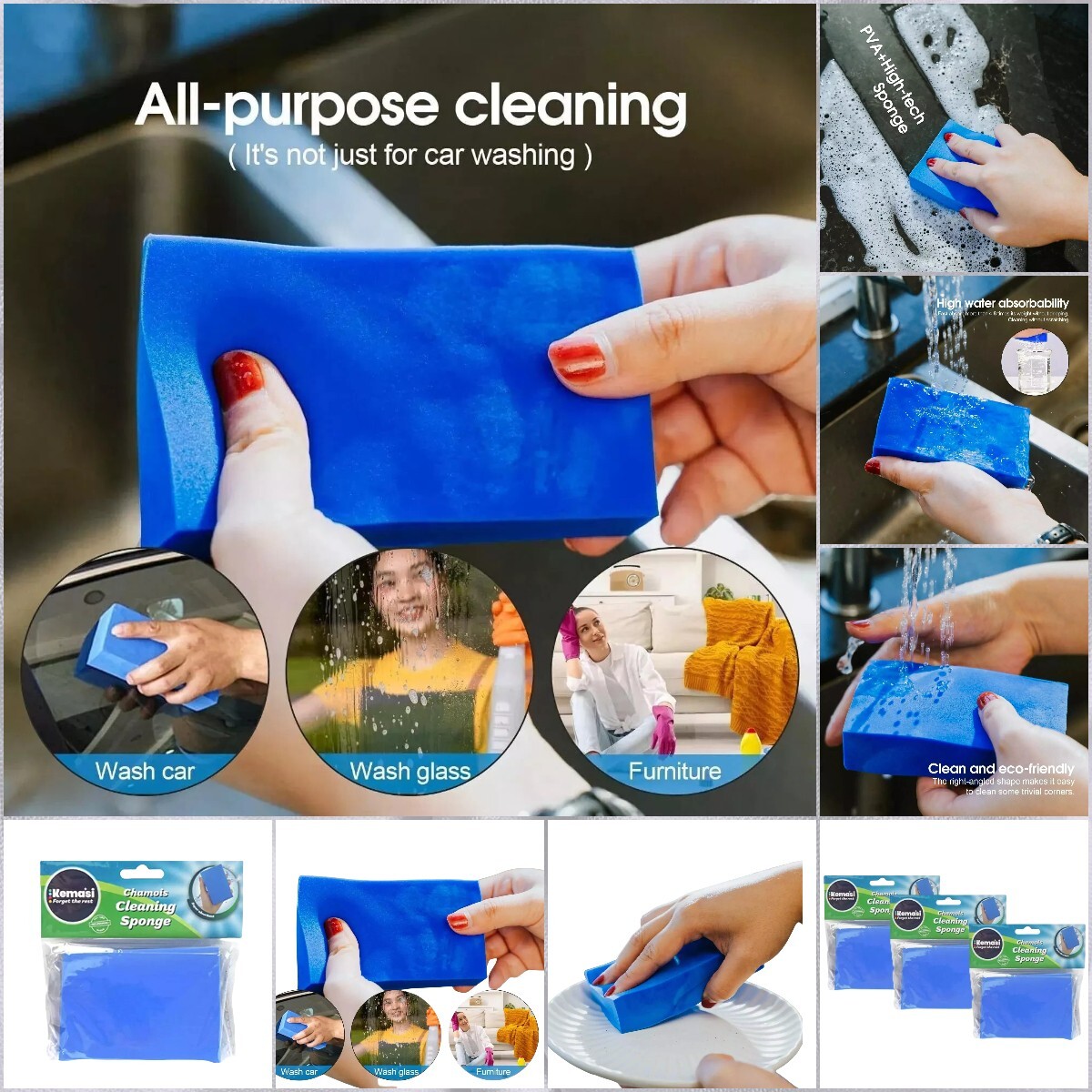 3PK Blue Chamois Cleaning Sponge Super Absorbent for Home Kitchen Car Wash 11cm