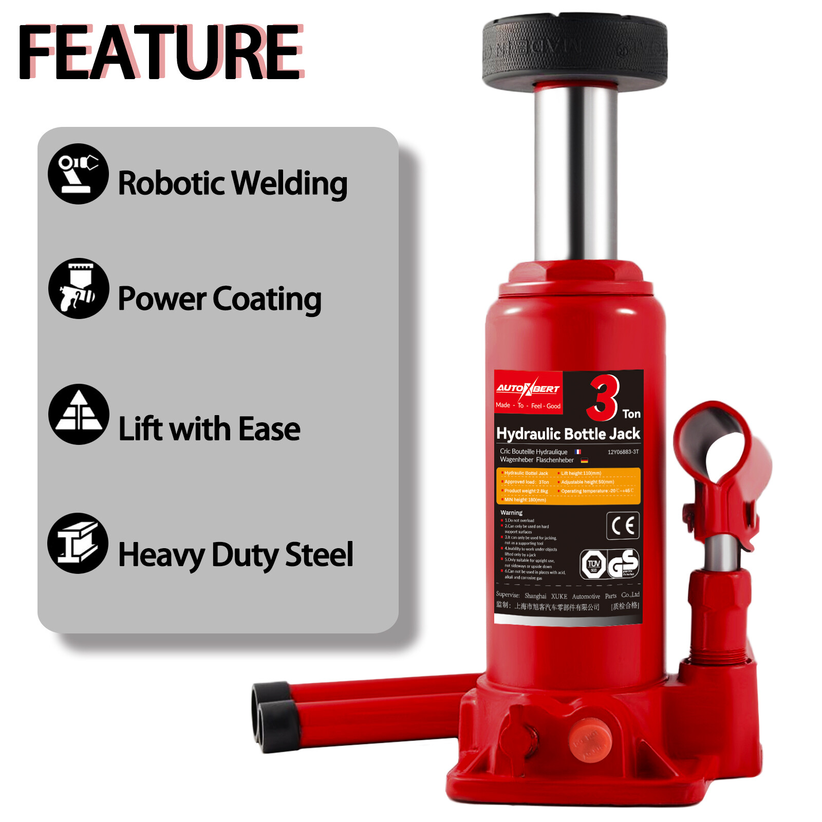 3Ton Hydraulic Bottle Jack Automotive Car Repair Lifting Tool Rubber Jack Pad.