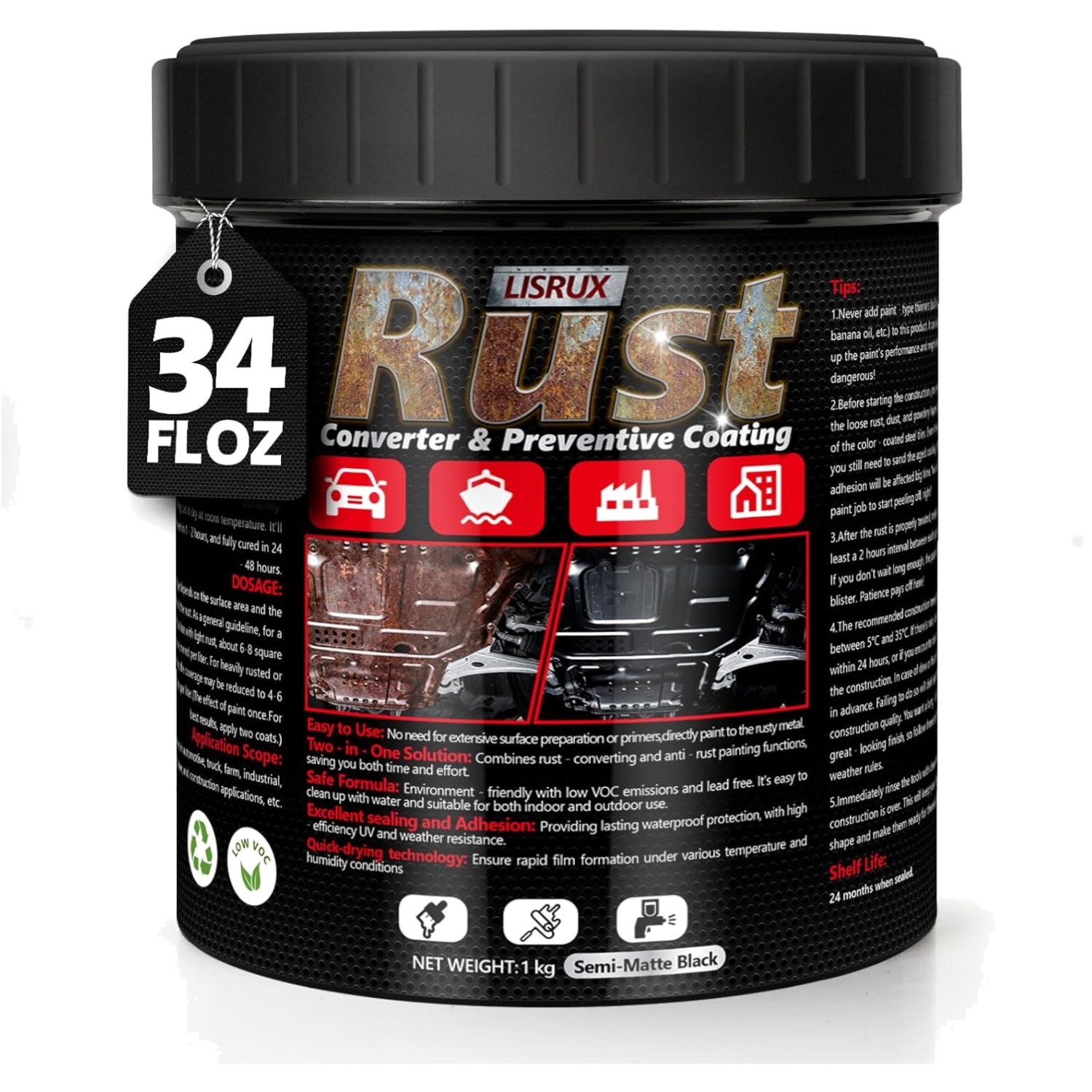 4-In-1 Rust Converter & Metal Primer, 34 Fl Oz Black Rust Inhibitor Paint for Me