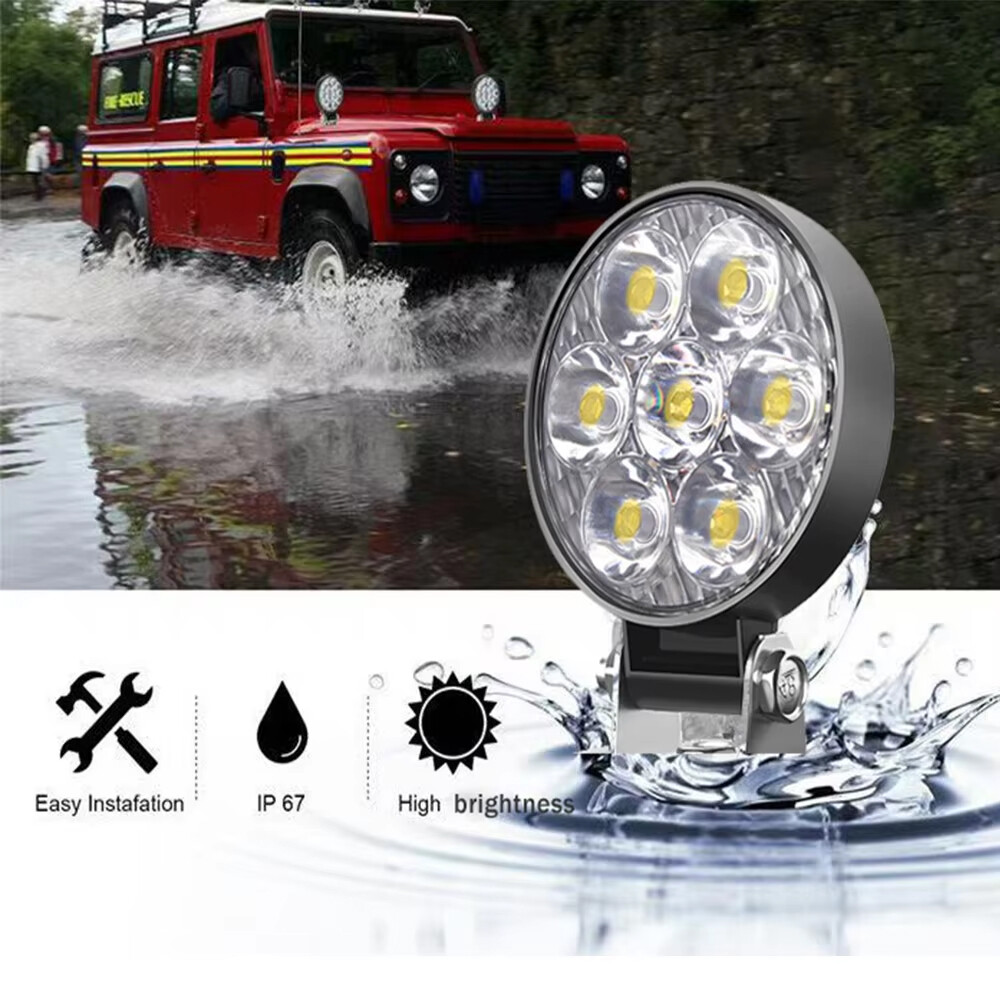 4 x Mini LED Work Lights Round 6.2CM 12V-24V 21W 6000K Spot Beam LED Work Light