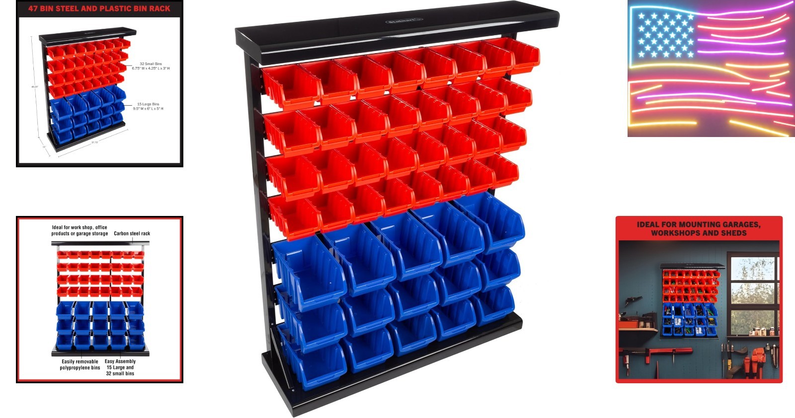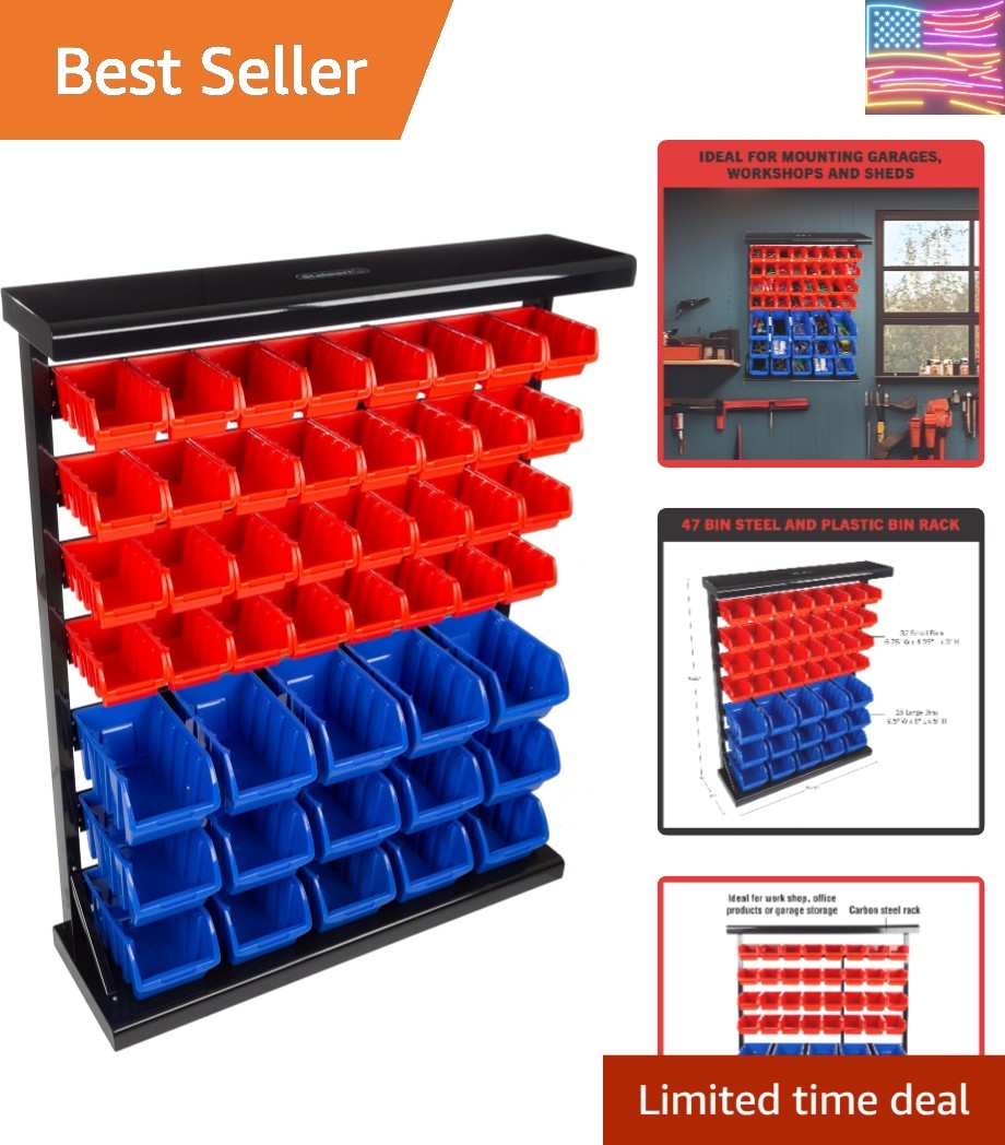 47-Bin Garage Organization Rack 15 Large, 32 Small – Tabletop or Wall Mount S…