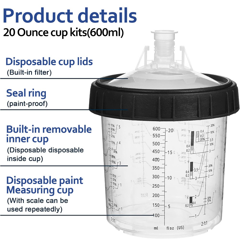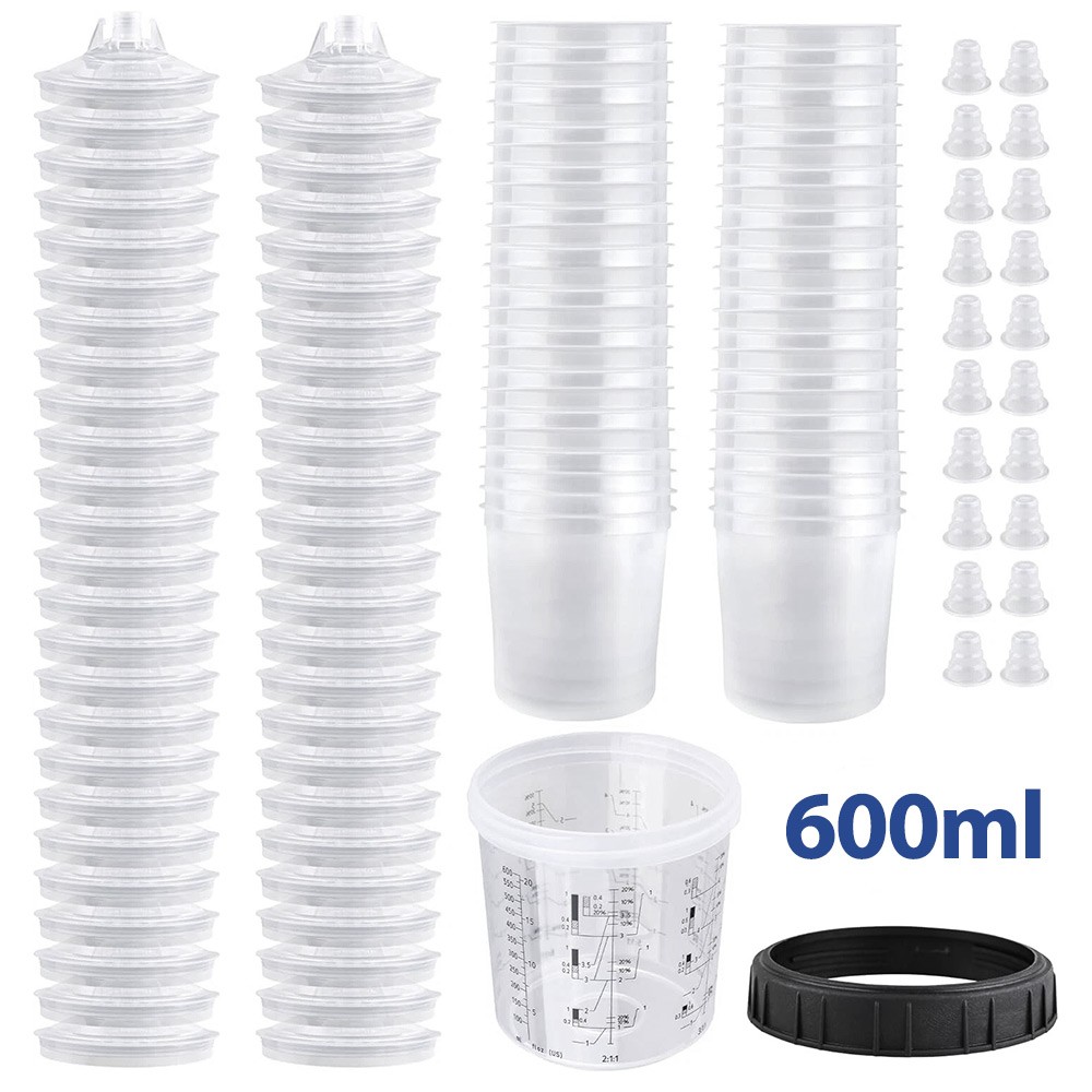 50*Automotive Paint Cup Mixing Cups and Liners Kit Disposable Spray Car Painting