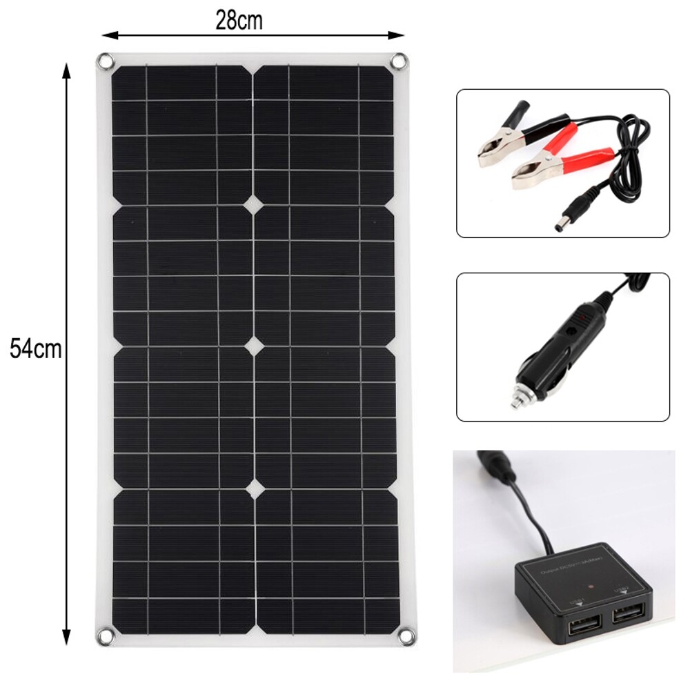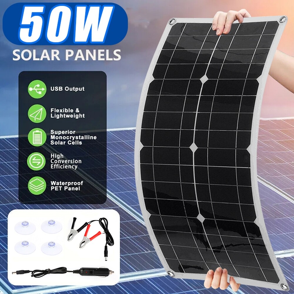 50W Solar Panel Dual USB 12V Mono Home Caravan Camping Power Battery Charging