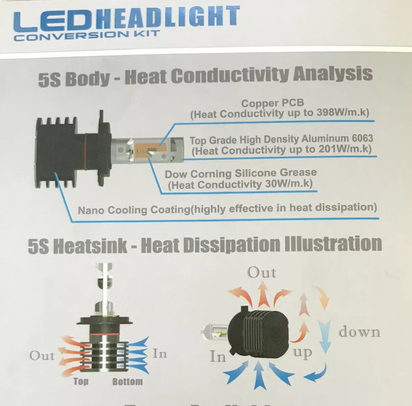 5S LED HEADLIGHT CONVERSION KIT – H11 – AUTOMOTIVE – FANLESS AIR JUMP TECHNOLOGY
