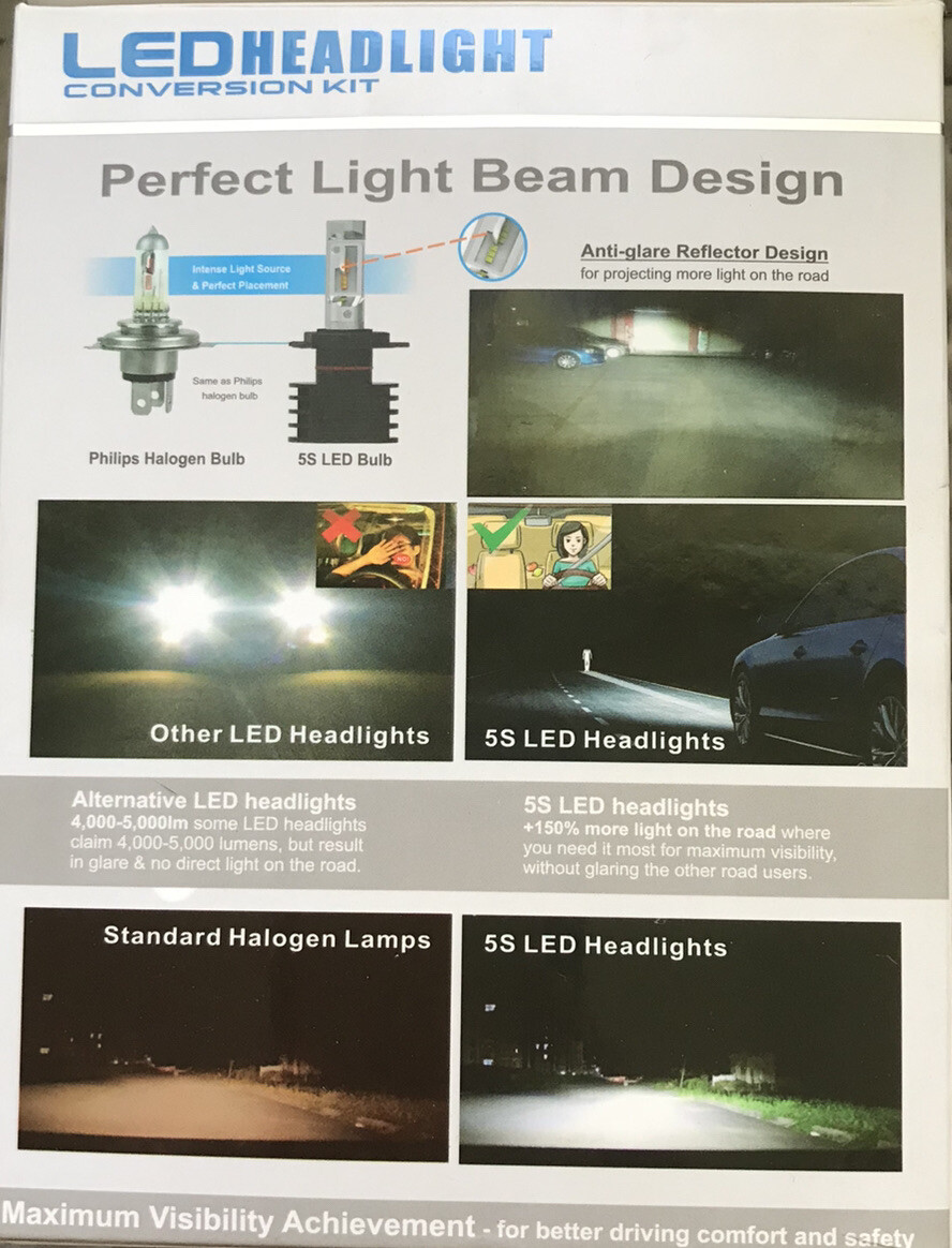 5S LED HEADLIGHT CONVERSION KIT – H11 – AUTOMOTIVE – FANLESS AIR JUMP TECHNOLOGY