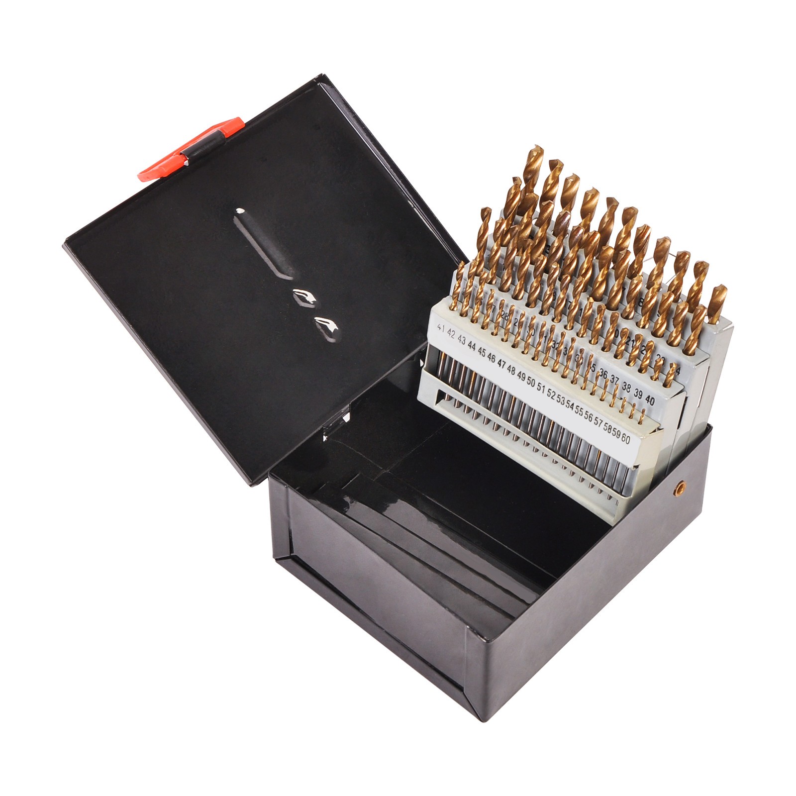60pc Drill Bit Set Straight HSS High Speed Steel Bits Numbered #1-#60 Metal Case