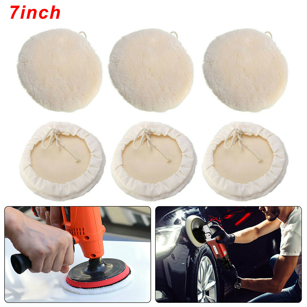 6PCS 7inch Polishing Bonnet Buffing Pads Soft Wool For Car Polisher Accessories