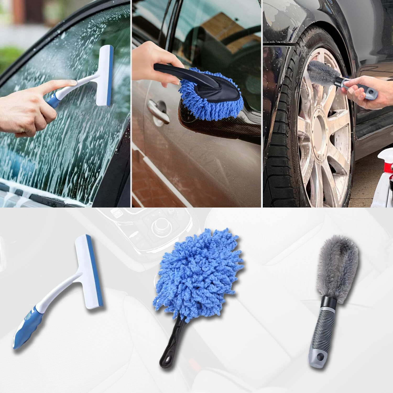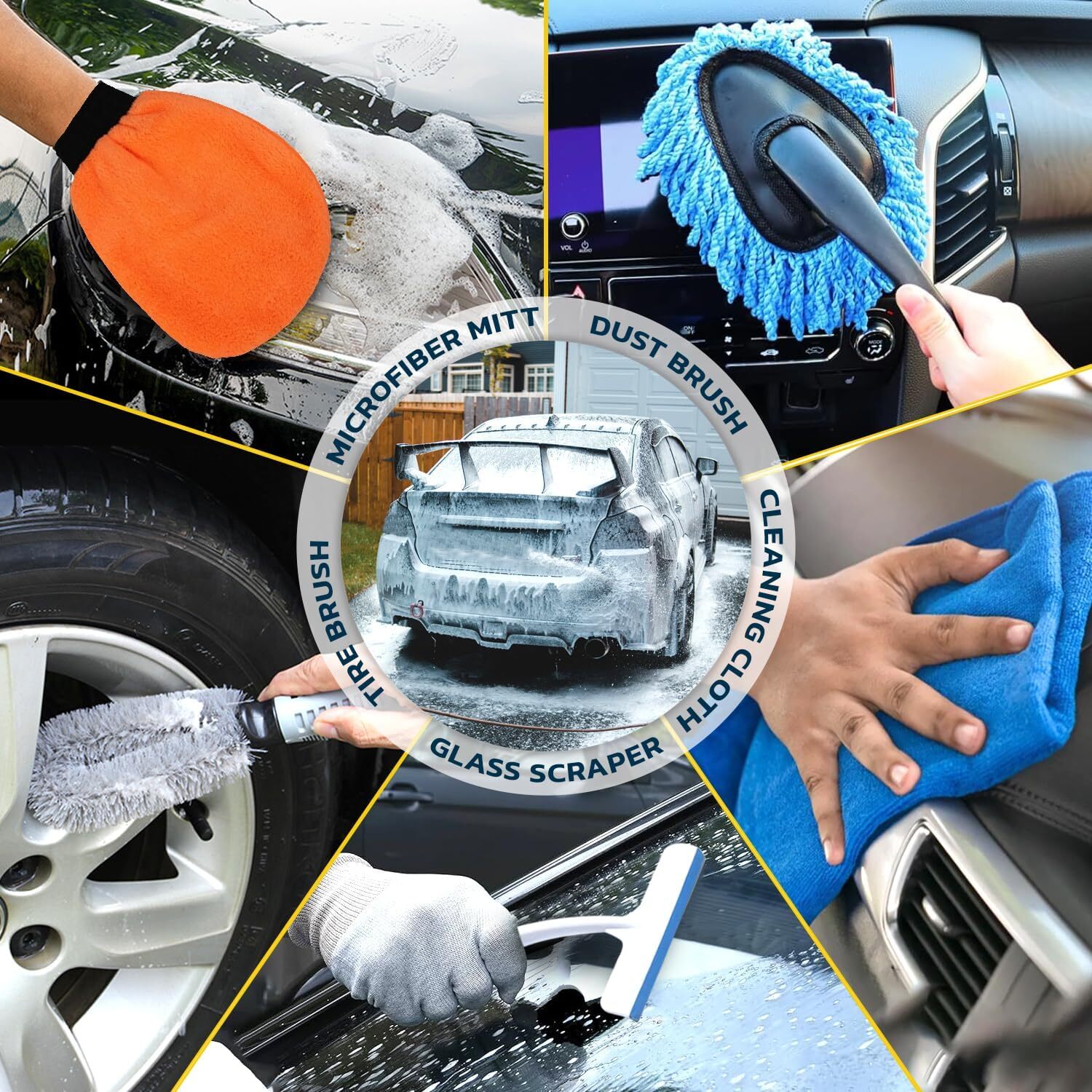6pcs Car Wash Kit, Complete Car Wash Bucket Set with Brush, Microfiber Cloth