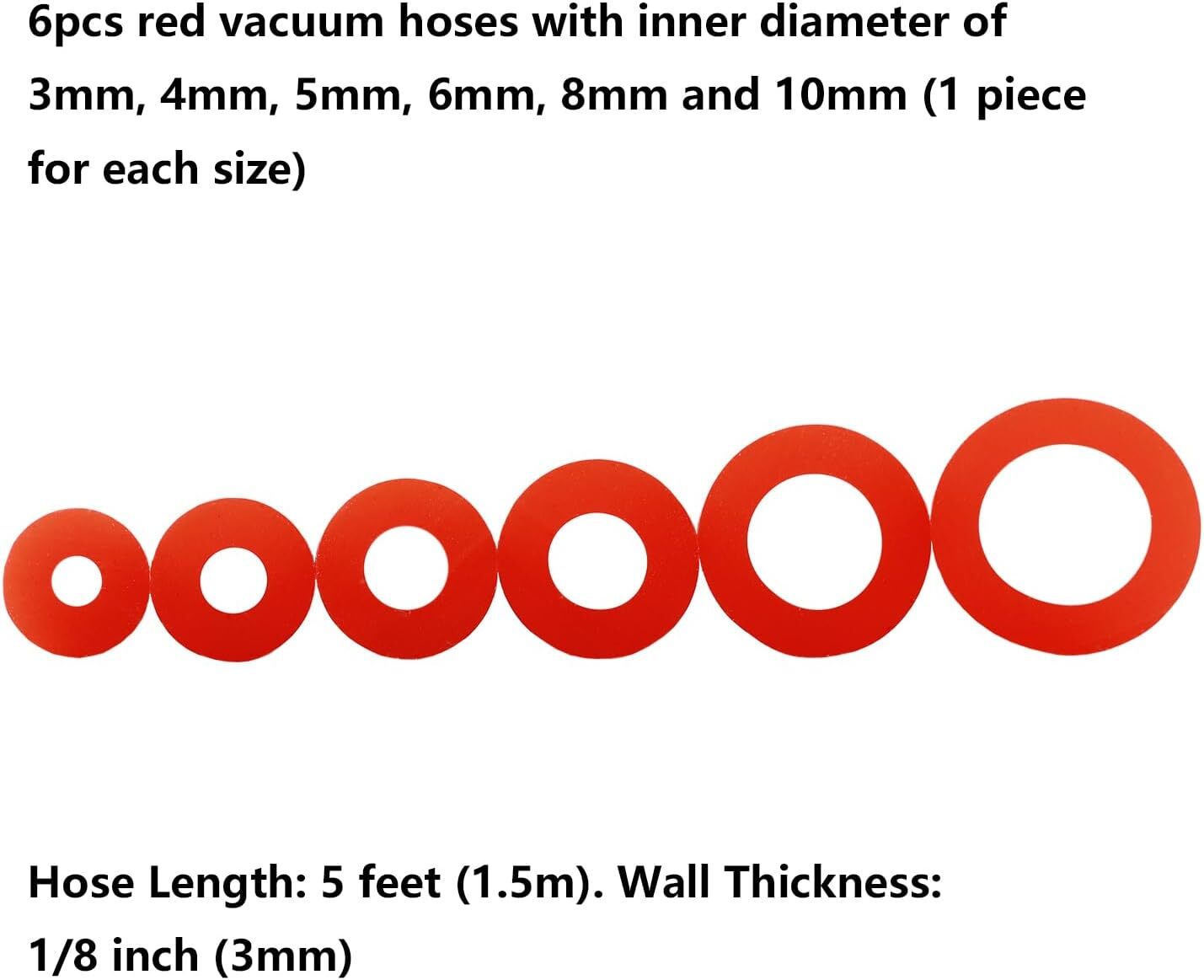6PCS Silicone Vacuum Hose Kit 5FT For Automotive Air & Water Tubing Red New