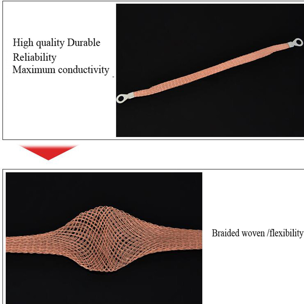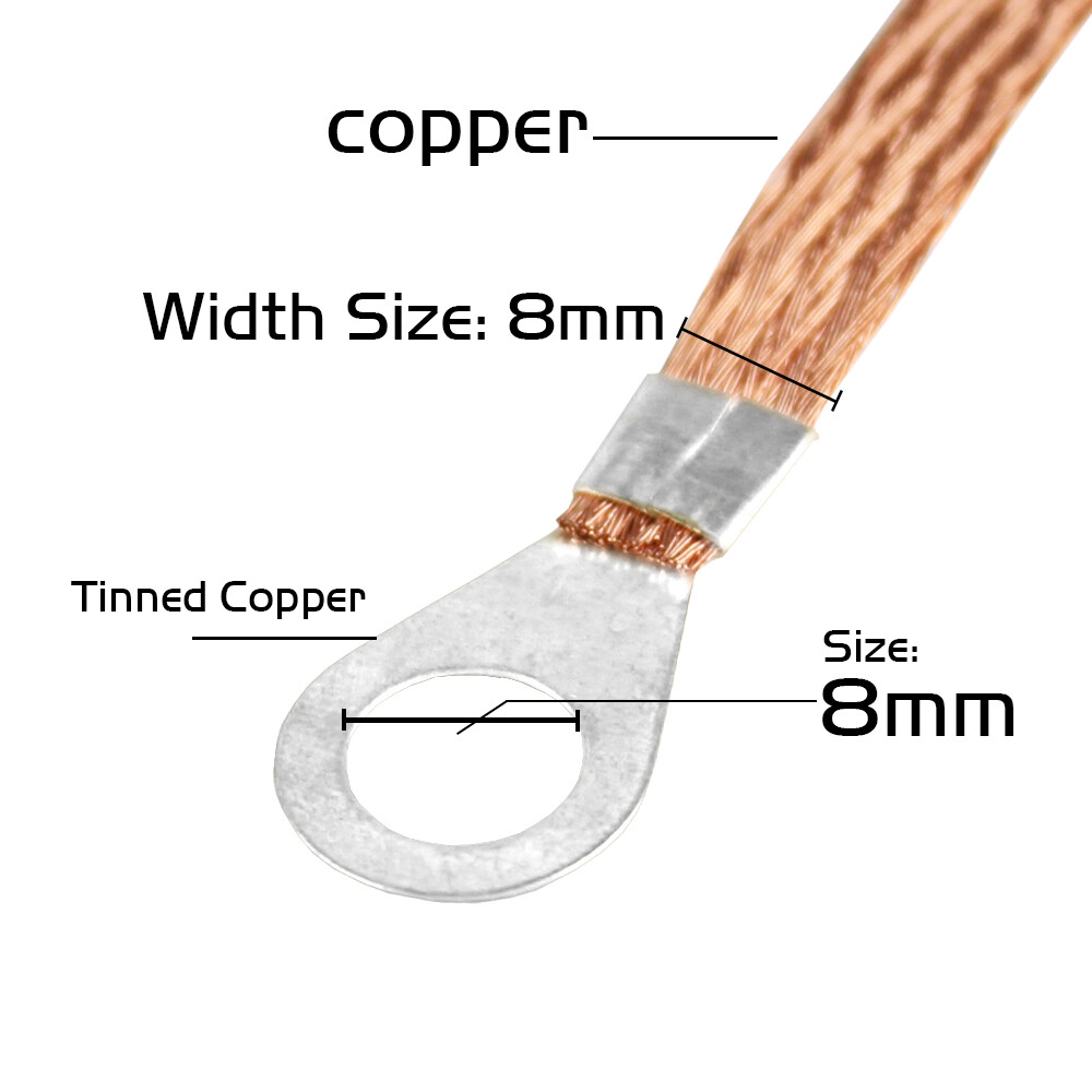 8pcs 60cm Copper Automotive Engine Electrical Braided Ground Bonding Strap Lugs