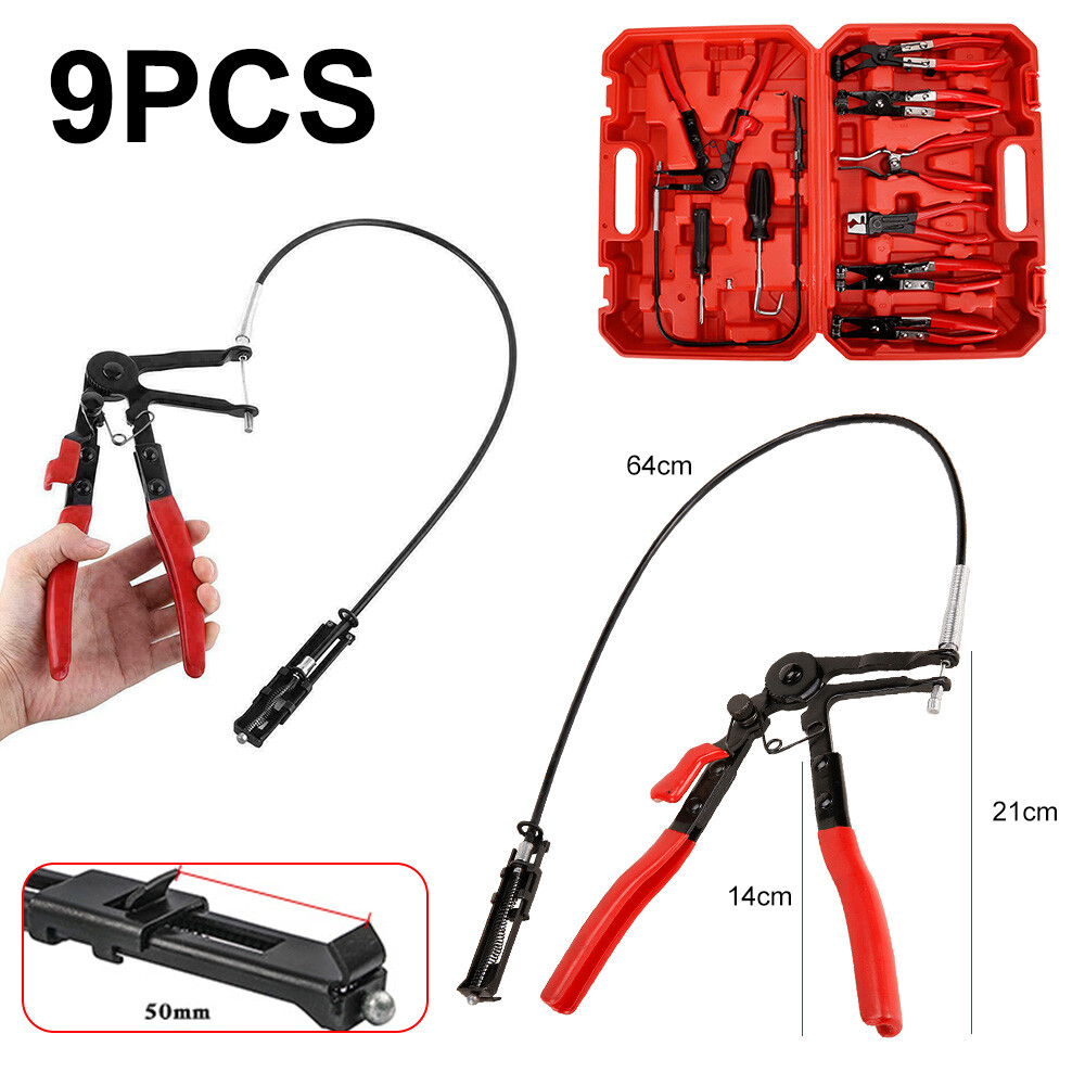 9PC Hose Clamp Clip Plier Kits Set Swivel Jaw Flat Angled Band Automotive Tools