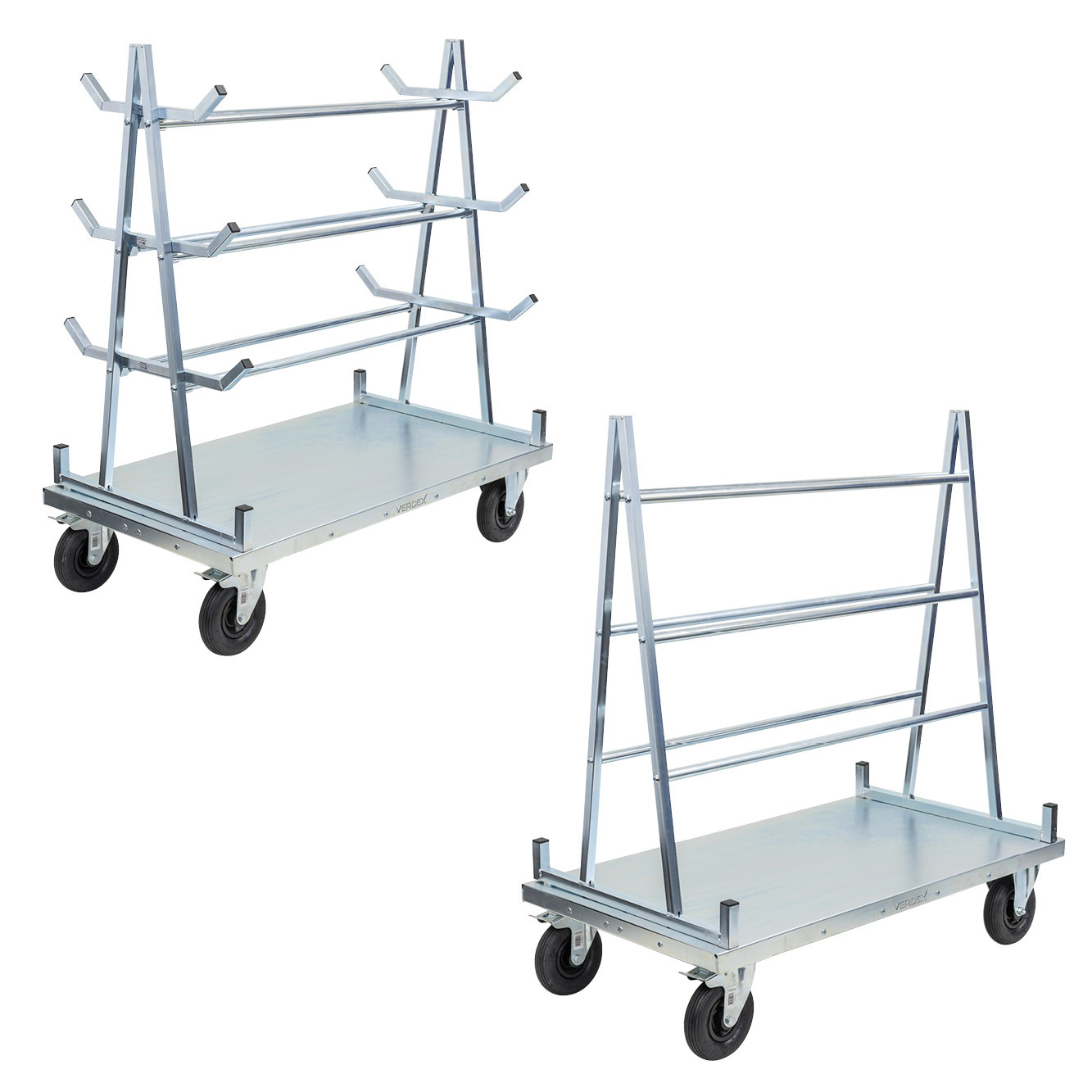 A Frame Panel Cart (Flat Free Castors) ,A Frame Panel Cart with Trestle Racks (Flat Free Castors) ,Entry Rollers to suit ,Fork Pockets to suit ,Trolley Towing Set to suit |