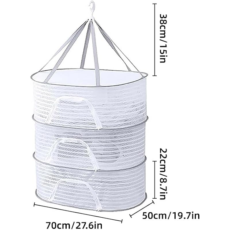 AIMALL 2-Layer or 3-Layer Foldable Drying Net – 27.6 x 19.7 Inch Hanging Mesh Basket for Vegetables, Fish, and Dry Goods, Fly-Proof with Windproof Hook