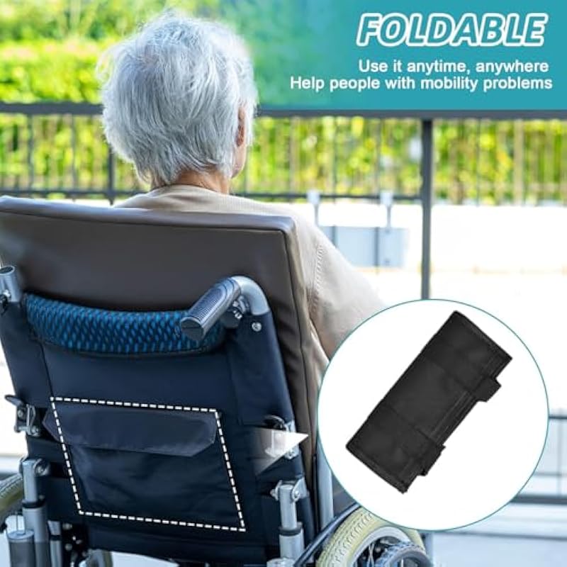 AIMALL Elderly Mobility Aid – Portable Wheelchair Side Pouch with Double Cushion Handle, Multi-Use Patient Transfer Assist Device for Elderly Care, 45.2″ Long, Black