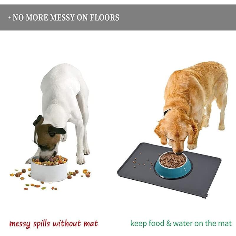 AIMALL Silicone Pet Feeding Mat for Dogs and Cats, Non-Slip Waterproof Food Grade Placemat with Raised Edges, Easy Clean Dish Bowl Pad, 18.9×11.8 in