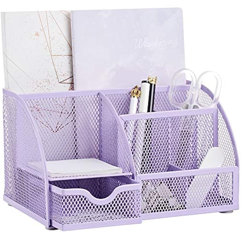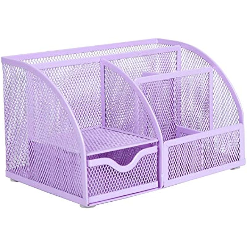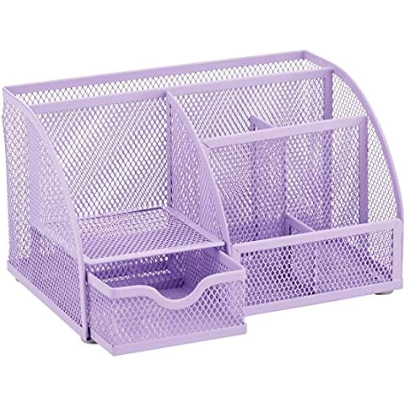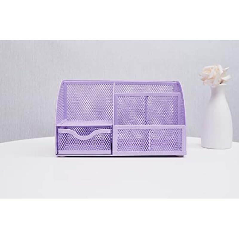Annova Mesh Desk Organizer Office with 7 Compartments + Drawer/Desk Tidy Candy/Pen Holder/Multifunctional Organizer (Light Pink)