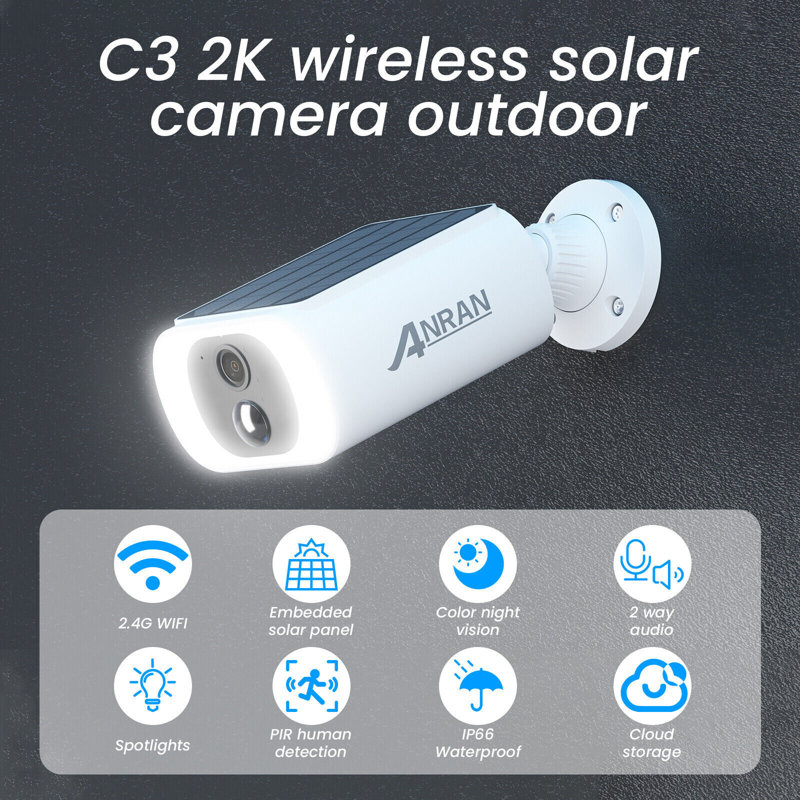 ANRAN 3MP Solar Security Camera System Wireless Home WiFi Outdoor Night Vision