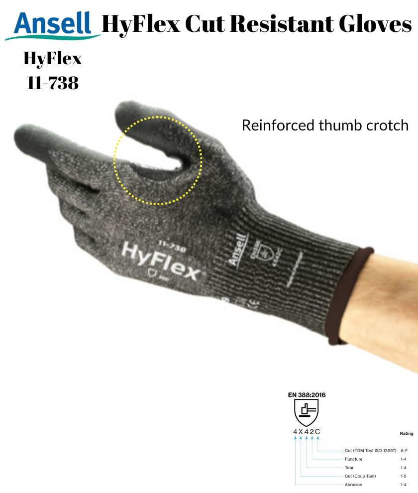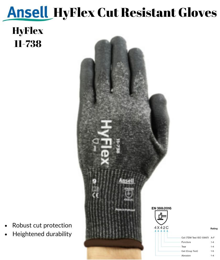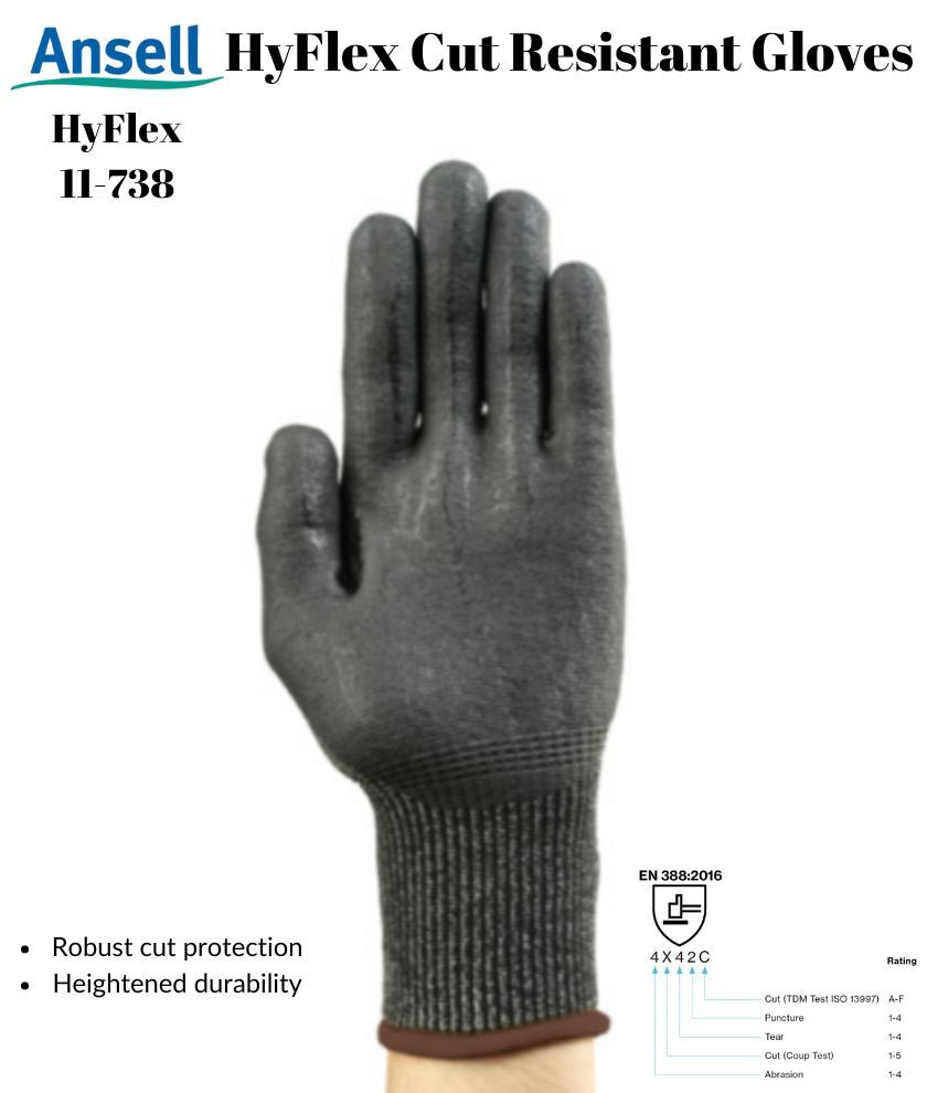 Ansell HyFlex 11-738 Cut Resistance Mechanical Automotive Work Industrial Gloves