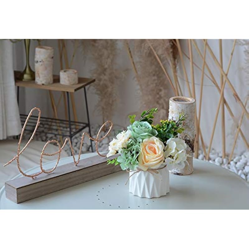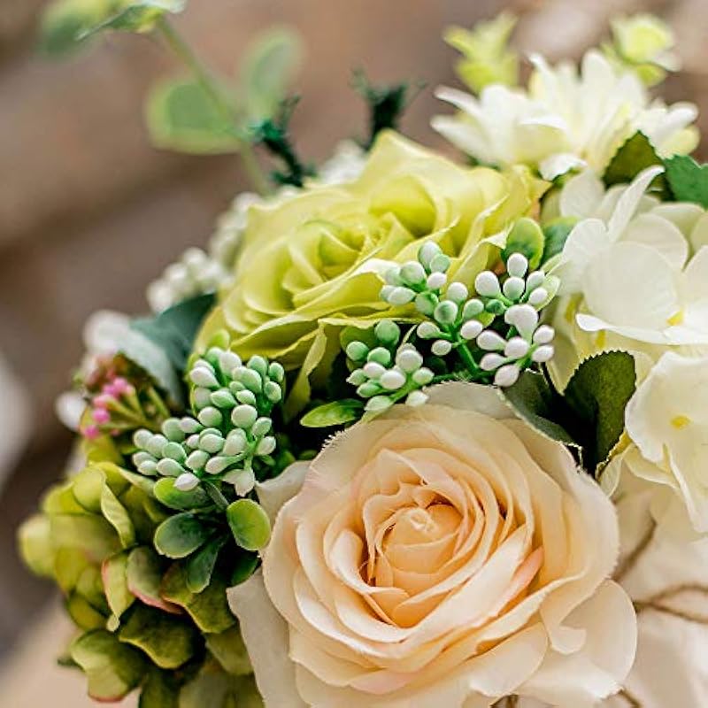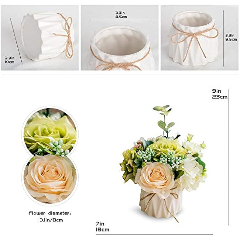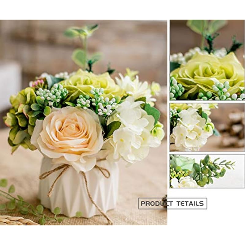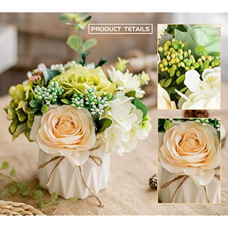 Artificial Flowers Fake Flowers Silk Rose Bouquets Decoration with Ceramics Vase for Table Home Office Wedding (Champagne Flowers)