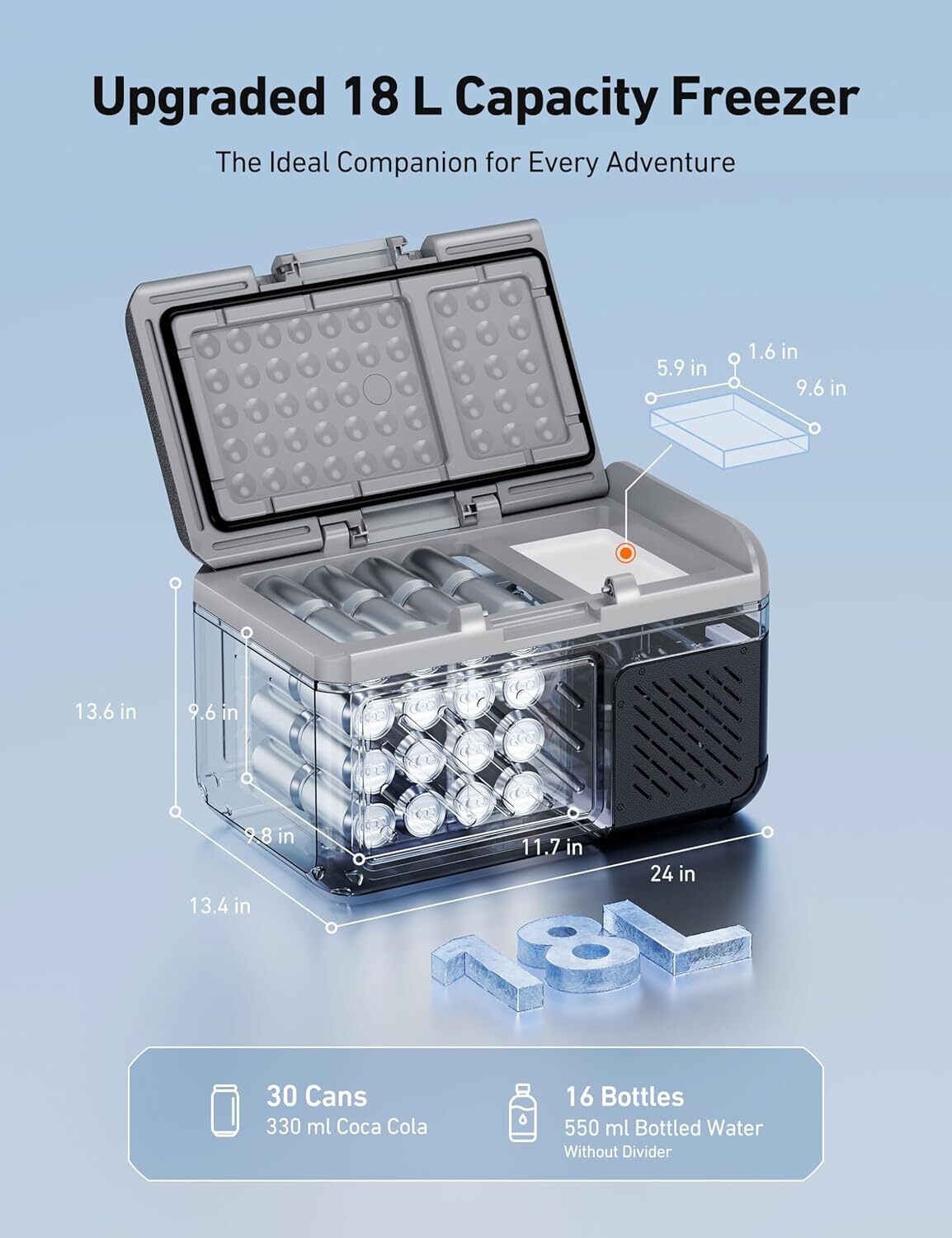 AstroAI 18L Car Refrigerator Dual Zone Portable Freezer Camping Fridge