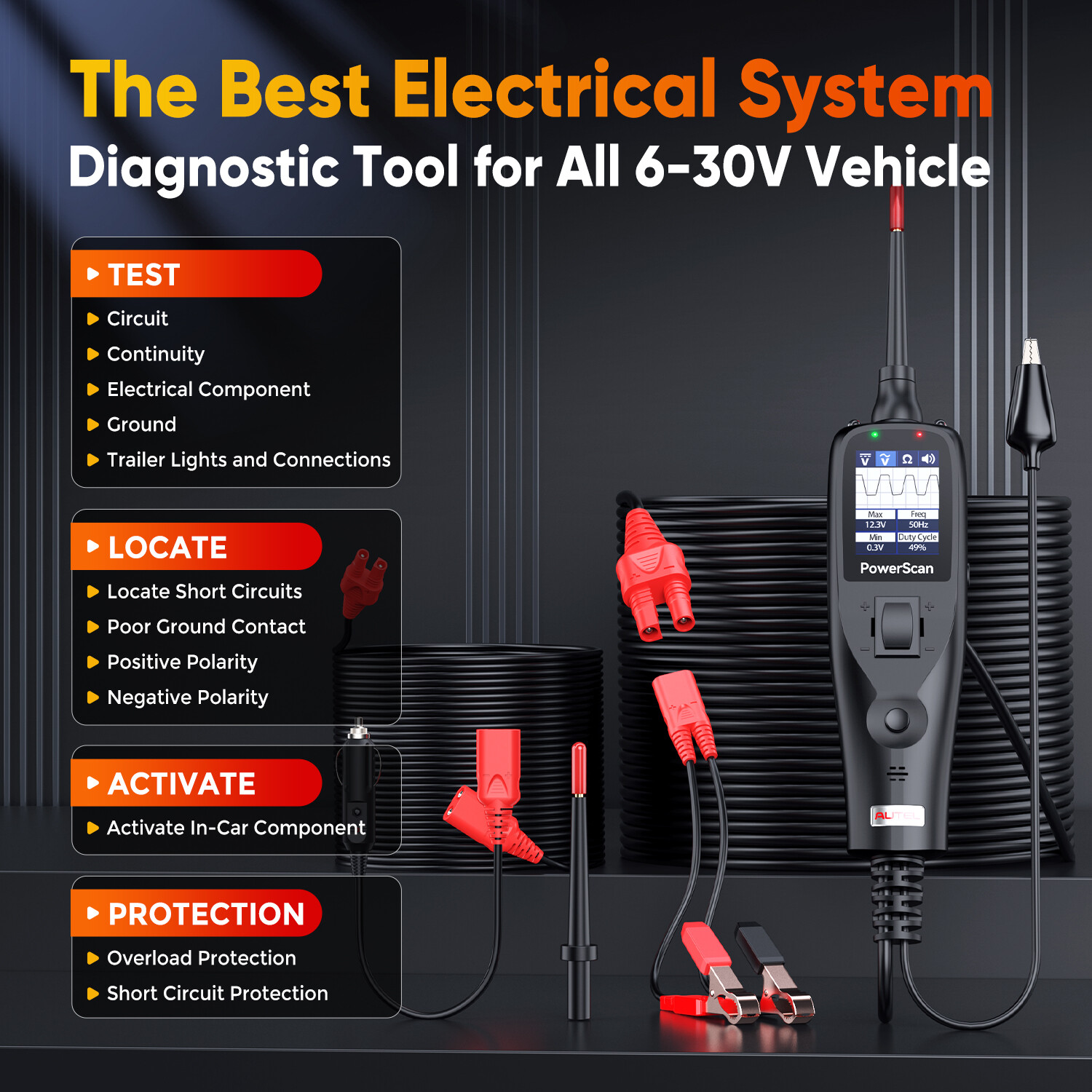 Autel PowerScan PS100 12V 24V Automotive Power Circuit Tester Tool Probe Kits