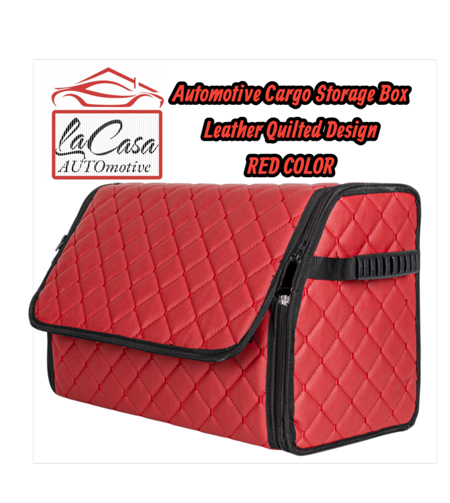 Automotive Cargo (Red Color) Storage Box – Leather Quilted Design