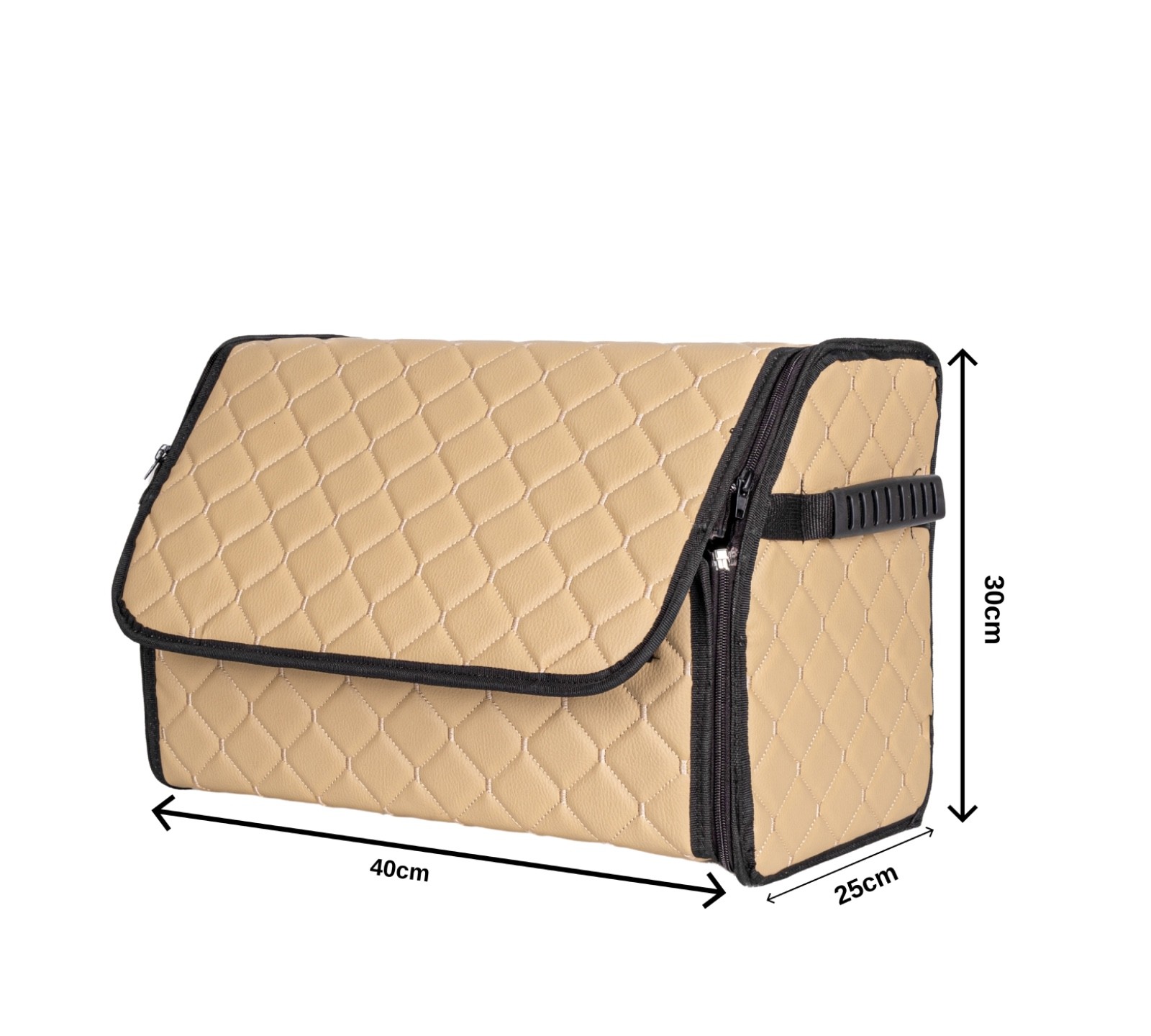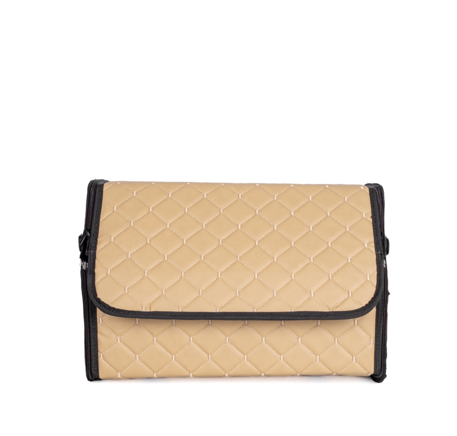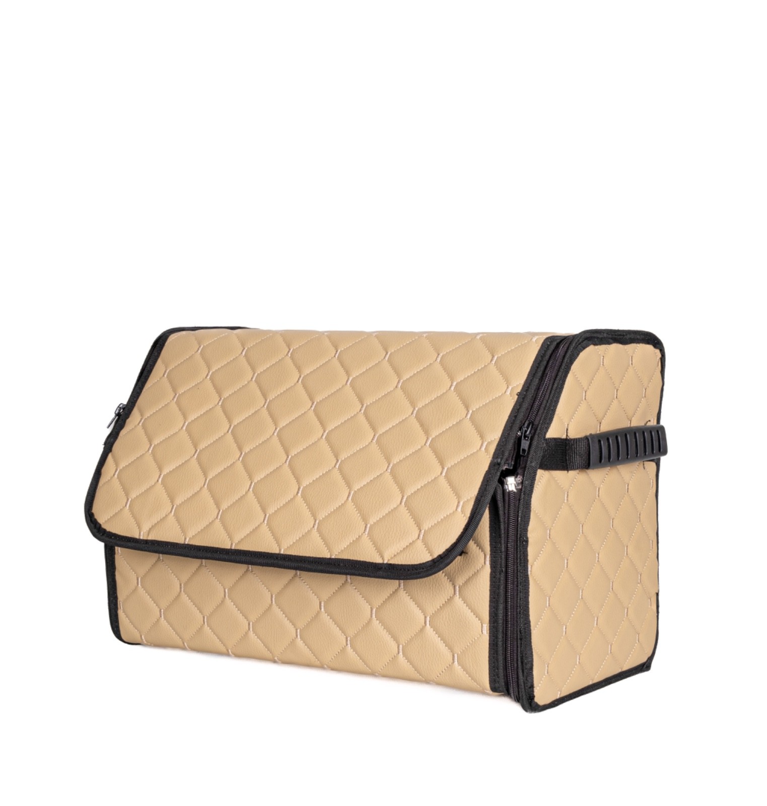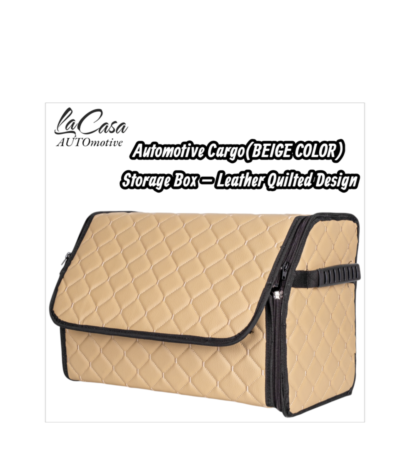 Automotive Cargo Storage Box – Leather Quilted Design Beige Color